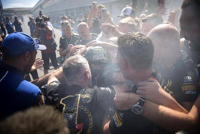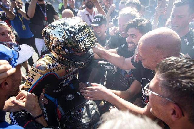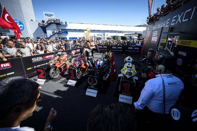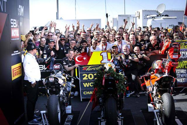 最高級(jí)別的 WSBK,積分榜的領(lǐng)先者、駕駛 1 號(hào)車的土耳其車手拉格里奧盧(Toprak Razgatlioglu),在第一節(jié)比賽拿到了亞軍,盡管在超級(jí)排位賽正賽沒(méi)有拿到積分,但在隨后的第二節(jié)比賽奪得了第三名,順利奪得了今年 WorldSBK 最高級(jí)別的世界冠軍(車手年度積分總冠軍)。