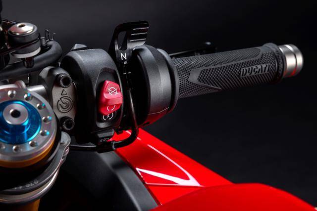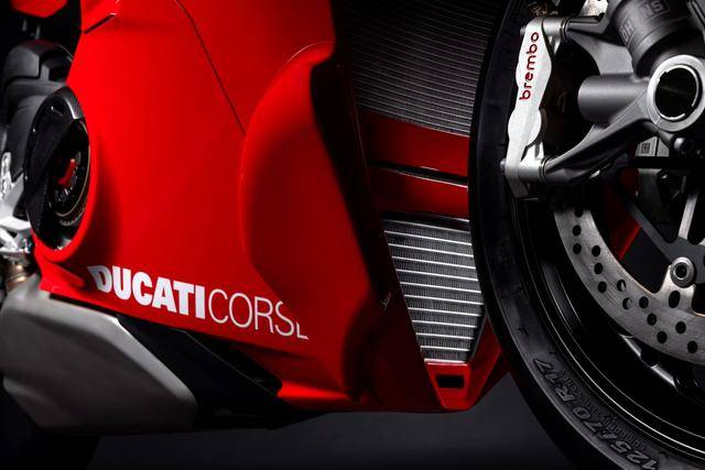 2026 Panigale V4 R 搭載一副 V 型 90 度四氣缸、每氣缸四氣閥的 Desmosedici Stradale R 發(fā)動(dòng)機(jī),缸徑、行程維持與上一代車型相同的 81 mm x 48.4 mm(標(biāo)準(zhǔn)版、S 版的缸徑、行程為 81 mm x 53.5 mm),排氣量 998 cc,峰值動(dòng)力輸出 218 匹/15750 rpm(歐洲版。美國版為 208.4 匹/13250 rpm)。車體方面,單座位的設(shè)計(jì),采用一副被廠方稱之為 Front Frame “ 前車架 ” 式的鋁合金制雙翼樑結(jié)構(gòu)的車架,Ohlins 奧林斯配套的前后懸掛、方向阻尼器,Brembo 布雷博配套的剎車卡鉗等。