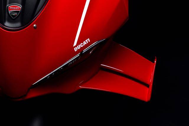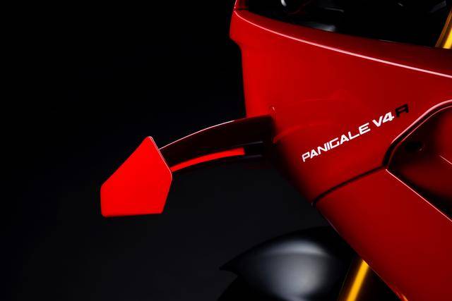 5、新車的外觀造型、在整體也同樣是來自 2025 Panigale V4/V4 S,但采用了新的空氣動(dòng)力學(xué)組件:R 版采用新的、更大面積(比 V4 S 增大了 20 mm)的定風(fēng)翼,該組件的負(fù)載增加了大約 25%,能夠產(chǎn)生更大的下壓力,在 270 km/h 的速度之下、提供 4.8 公斤的下壓力,到 300 km/h 時(shí)下壓力增加至 6 公斤。下壓力的增加,有助于車輛在加速時(shí)的穩(wěn)定性、和高速之下控制精度的提高;