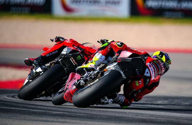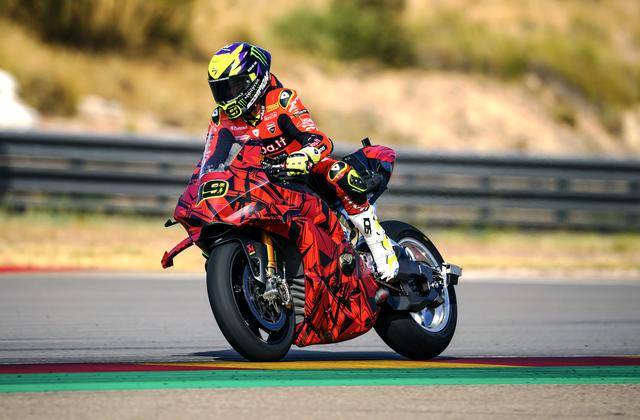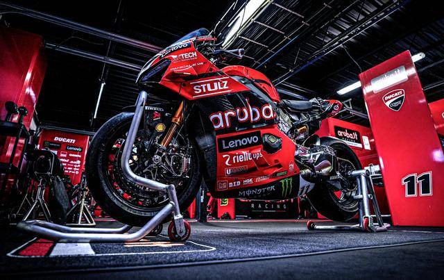 下面的圖片,在八月底進(jìn)行的西班牙阿拉貢(Aragon)測(cè)試?yán)锸状温睹?、基于第二?R 版升級(jí)而來的 WorldSBK 規(guī)格工廠賽車(資料圖片)。