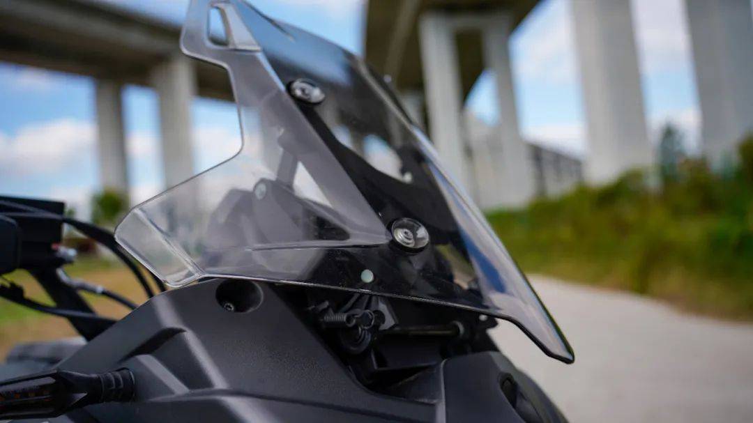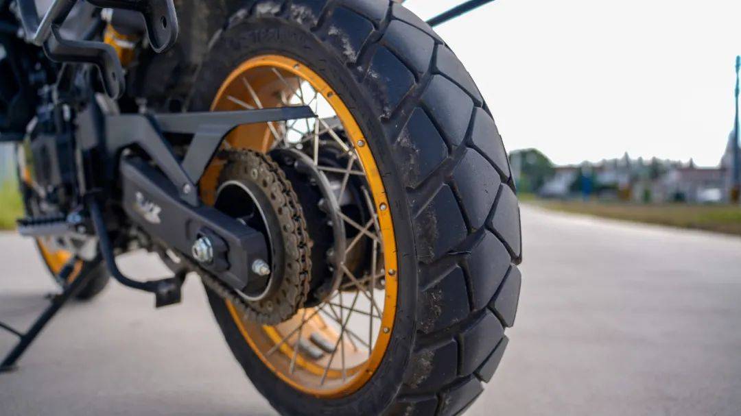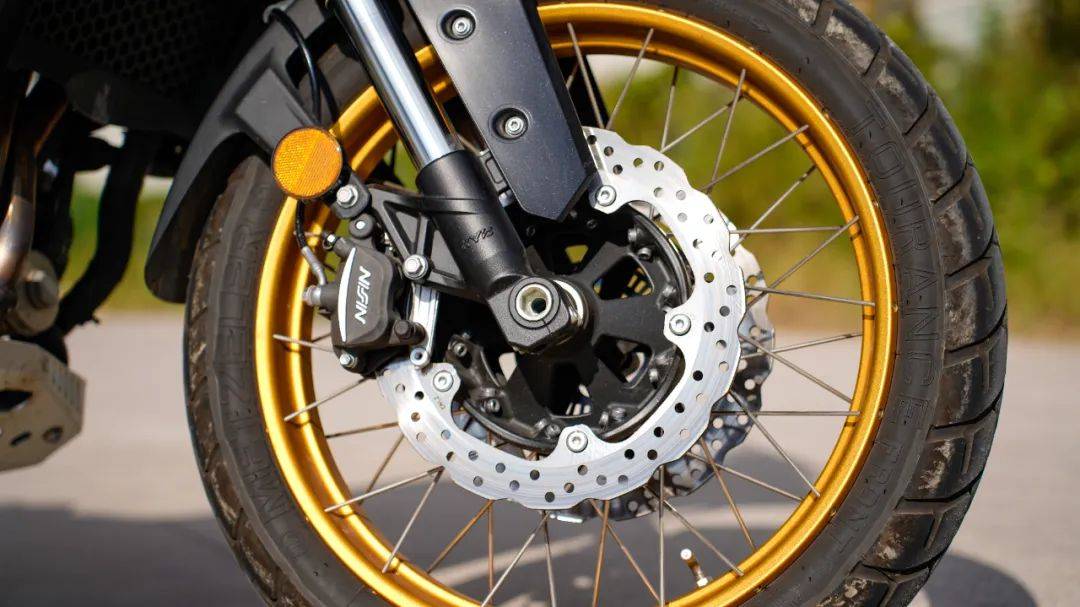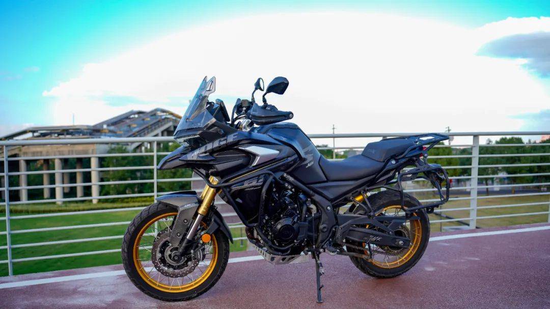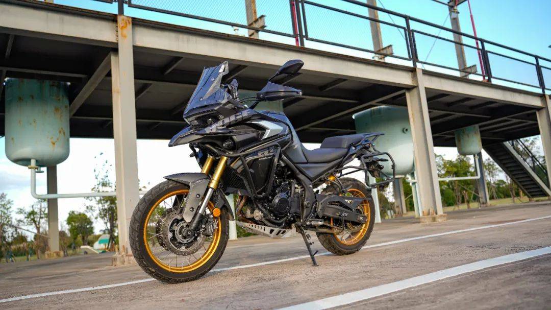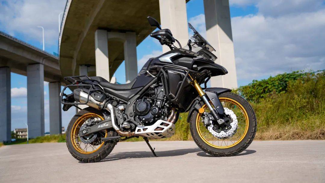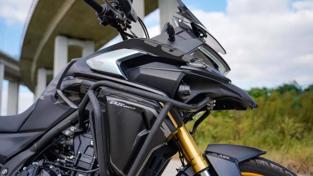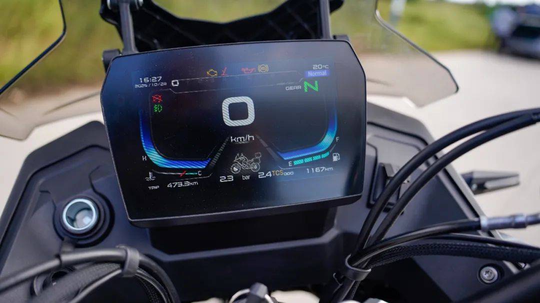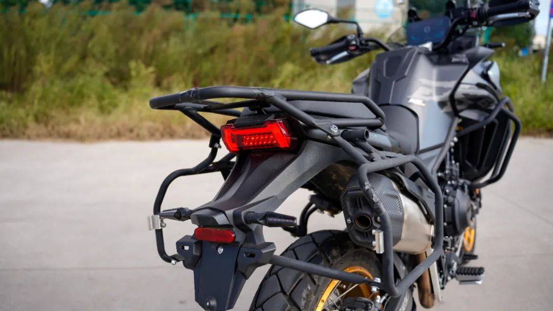 避震器搭載了KYB全可調(diào)倒置前叉(174mm行程)+多連桿外置氣囊后減震(181mm行程),支持預(yù)載回彈壓縮多段調(diào)節(jié),駕駛者可以根據(jù)自身條件進行適配。日信雙活塞徑向卡鉗配298mm雙碟盤,標(biāo)配雙通道ABS+TCS,主流配置水準(zhǔn)。象牌多功能輪胎,前110/80-R19,后150/70-R17,搭配輻條輪轂,成功減輕了簧下質(zhì)量,最大離地間隙220mm,通過性足夠硬核。細(xì)節(jié)處理