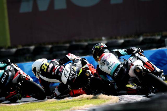 第二節(jié)比賽稱得上是一場經(jīng)典的角逐,16 圈的比賽、三位小車手從比賽發(fā)車到最后沖線,全程都緊緊地前輪貼著后輪般、在每一個(gè)彎道進(jìn)行著爭奪;三人的積分都相近,這場 2025 賽季的最后一節(jié)比賽、將決定兩席出線名額的最終名單,讓這個(gè) FIM MiniGP 里面最高級(jí)別的爭奪、猶如一場龍爭虎斗。