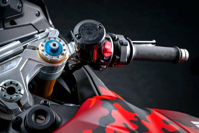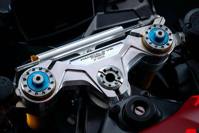 配置上,兩個特別版車型在 S 版的基礎(chǔ)上進(jìn)行了升級,換裝了更輕的五幅式鍛造鋁合金制前后車輪,這套車輪受 DesmosediciGP 的啟發(fā)設(shè)計而成,比原車的鑄造式車輪輕了 1.5 公斤,從而提高了車輛的響應(yīng)性、操控性和加速性能;換裝了角度更低的車把;換裝了較高的賽車風(fēng)擋;標(biāo)配了奧林斯的轉(zhuǎn)向阻尼器(標(biāo)準(zhǔn)狀態(tài)下的 S 版沒有此裝備)。