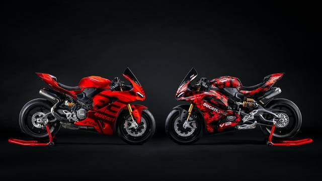 兩個特別版車型用以向杜卡迪 MotoGP工廠車隊的兩位車手致敬,以帶有特制編號的方式推出(每一輛產(chǎn)品的上三星有最大四位數(shù)的特制編號),兩個版本分別采用了特制的車體圖案/貼花: