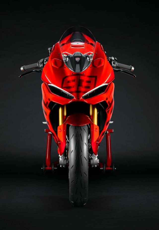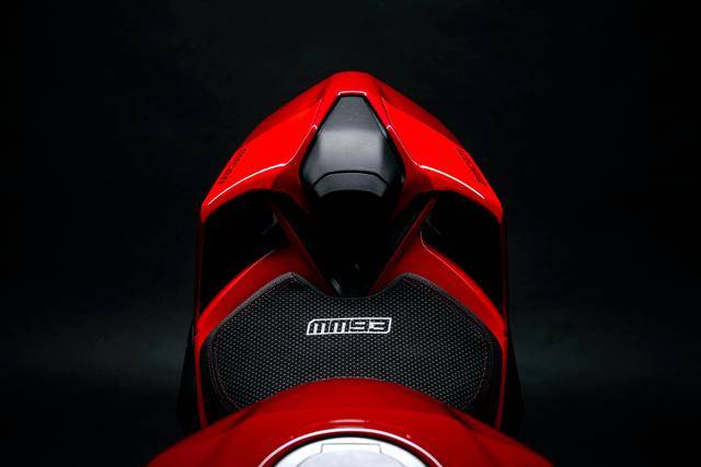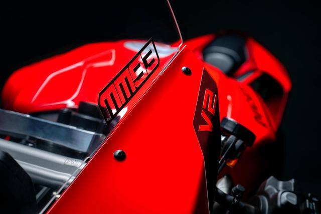 * Panigale V2 MM93 版采用了馬昆斯以杜卡迪官方車手的身份、在季前測試中作首次時亮相時,他所騎乘的賽車之圖案,對雙方來說、這都是一個歷史性的時刻,也是杜卡迪和馬昆斯共同寫下的歷史上最美麗篇章之一的前奏。整個車身圖案凸出了馬昆斯標(biāo)志性的賽車號碼 93,整流罩和前風(fēng)擋的兩側(cè)、也有著 MM93 的標(biāo)識;
