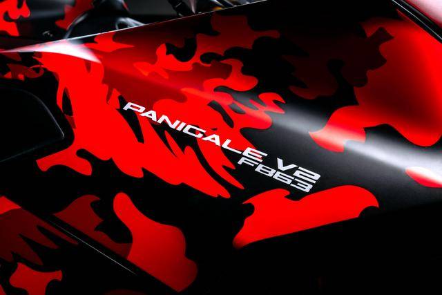 * Panigale V2 FB63 版,車身圖案采用了巴納亞的頭盔、手套、靴上所使用的黑色和迷彩風(fēng)格紅色,車頭帶有巴納亞所騎乘之賽車的號碼 63,整流罩兩側(cè)有 FB63 標(biāo)識,而前風(fēng)擋上則有巴納亞的座右銘 GoFree 字樣。