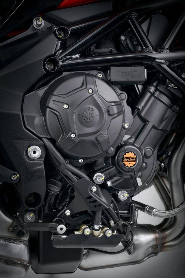 配置上,2026 Brutale 800 沿用了現(xiàn)行的水冷四沖程直列三氣缸、DOHC 每氣缸四氣閥的發(fā)動(dòng)機(jī),缸徑、行程維持在 79 mm x 54.3 mm,排氣量 798 cc,Nissin 日信的離合器液壓油泵、六檔的變速齒輪箱,最大動(dòng)力輸出仍為 83 kw(約 113 匹)/11000 rpm(上一版本的 Brutale 800 最大馬力輸出點(diǎn)在 11500 rpm);峰值扭矩輸出保持在 85 N.m,但輸出點(diǎn)從上一版本的 7600 rpm、調(diào)為了新的 7500 rpm。