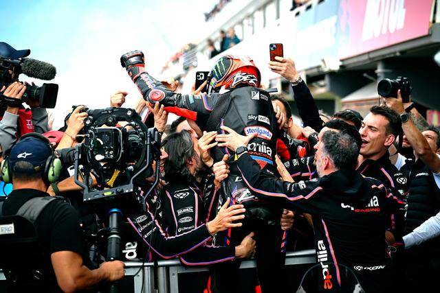 賽程為 27 圈的 MotoGP 級別正賽,貝澤奇發(fā)車后就處于領先的位置上,接下來的 10 圈比賽里,他與小馬昆斯展開了激烈的追逐;到上半段比賽的尾聲,小馬昆斯?jié)u漸慢了下來,并被駕駛著 25 號車的西班牙車手 R. 費南德茲(Raul Fernandez)超越;始終保持著高速的節(jié)奏的貝澤奇,最終順利奪得了正賽的冠軍,連續(xù)兩個分站的比賽獲得、讓他在 2025 賽季拿到的冠軍次數(shù)上升到三個。
