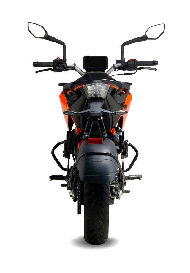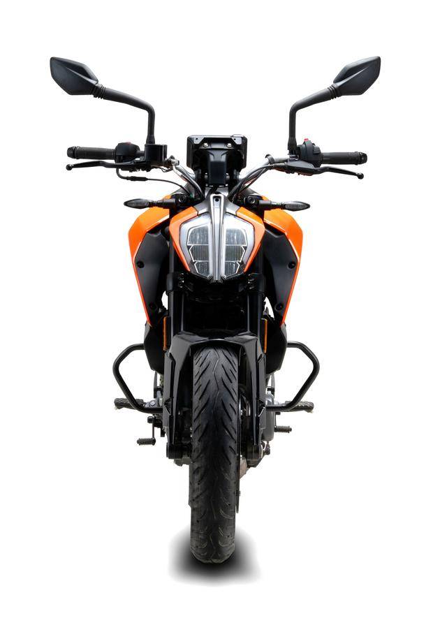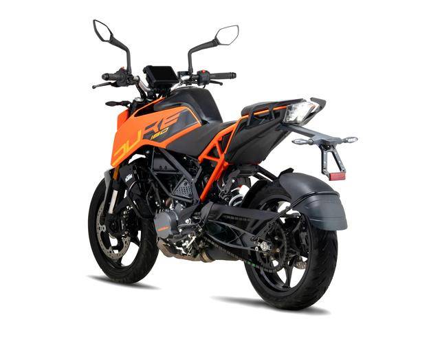 車身方面,采用一副鋼管式的車架,與 200 Duke 相近的外觀造型;WP 配套的懸掛系統(tǒng),前面是叉芯口徑為 37 mm 的倒立式前叉(200 Duke 的倒立式前叉、叉芯口徑為 43 mm),十級預(yù)載可調(diào)的單筒式后減震;全 LED 的燈光系統(tǒng),LCD 數(shù)字式的儀表板(200 Duke 采用 TFT 全彩色數(shù)字式儀表板);標(biāo)配了 ABS 的前后碟式制動(dòng)系統(tǒng),容量為 10.1 公升的油箱,全車整備重量 147 公斤。