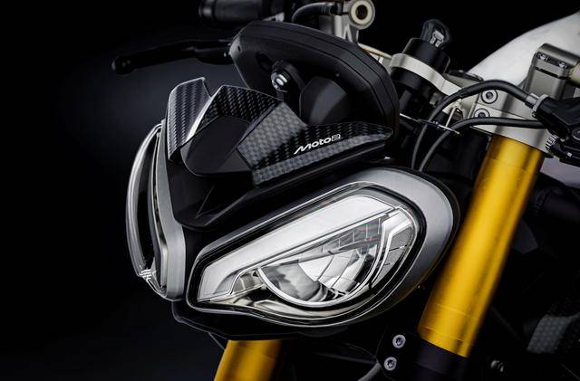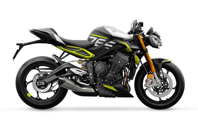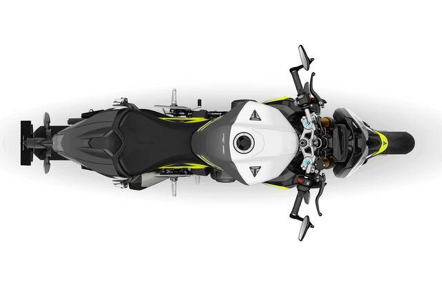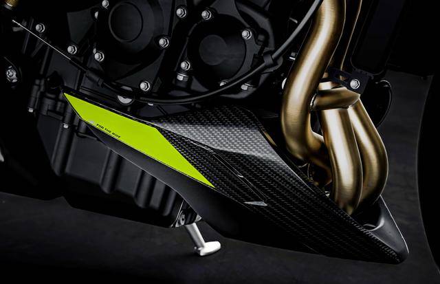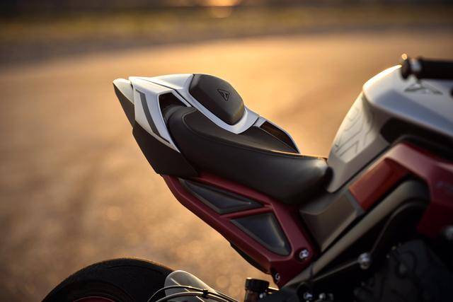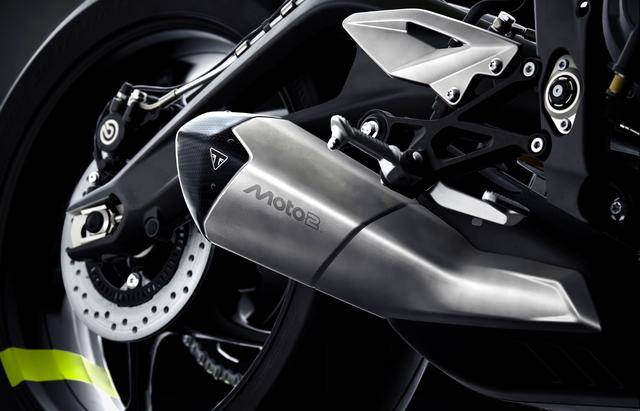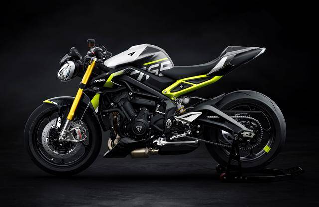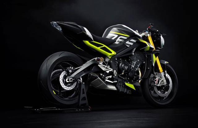 兩個(gè)版本均基于現(xiàn)行的 “ 街道三 ” Street Triple 765 RS 版修改而成,搭載一副與 Moto2 賽車同平臺(tái)的水冷四沖程直列三氣缸、DOHC 每氣缸四氣閥的發(fā)動(dòng)機(jī),缸徑、行程為 78 mm x 53.4 mm,排氣量 765 cc,最大動(dòng)力輸出均為 130 匹/12000 rpm(與 RS 版相同),峰值扭矩輸出 80 N.m/9500 rpm。