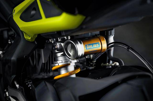 1、兩個(gè)車型均換裝了 Ohlins 奧林斯的 NIX30 倒立式前叉(RS 版采用 Showa 配套的 BPF 倒立式前叉),以提供更好的賽道級(jí)反饋與操控;
