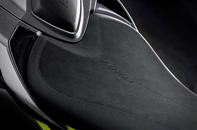 4、只生產(chǎn) 1000 輛的 Moto2 限量版,在上三星刻有限量的編號(hào);消聲器尾部、和有著更好附著力的定制鞍座上,也有著 Moto2 的字樣;換裝了透鏡式設(shè)計(jì)的后剎車燈組;換上了更多碳纖維制的、有著賽車風(fēng)格的前輪擋泥板、側(cè)板、發(fā)動(dòng)機(jī)底部整流罩和消聲器尾部外蓋;