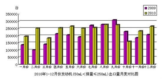 據(jù)海關提供出口統(tǒng)計數(shù)據(jù)顯示,由中國汽車工業(yè)協(xié)會編輯整理,現(xiàn)將2010年12月份摩托車發(fā)動機(50mL<排量≤250mL)產(chǎn)品進出口情況分析如下:
