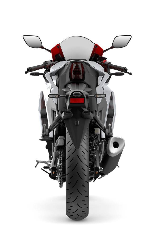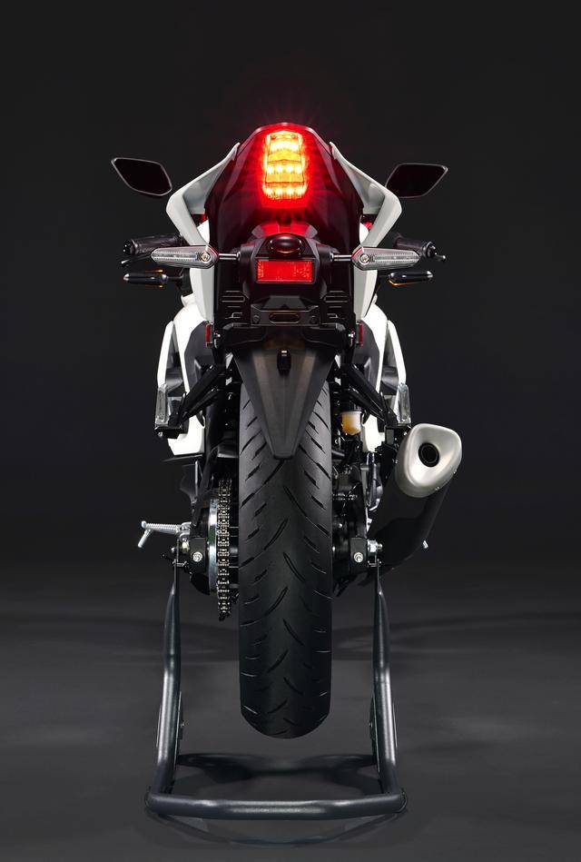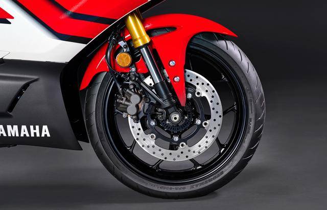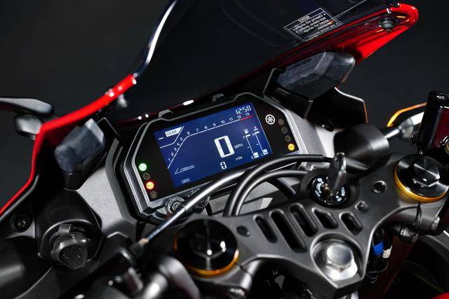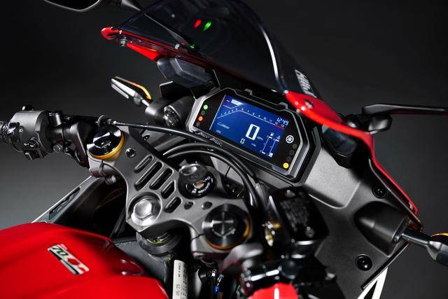 3、設(shè)計(jì)靈感來自 MotoGP工廠賽車 YZR-M1 的、具有空氣動力學(xué)效能的外觀造型,車頭前端的進(jìn)氣風(fēng)道下、集成了小型定風(fēng)翼,投影式前大燈和 LED 日間行車燈,數(shù)字式的儀表板;780 mm 鞍座高度、1380 mm 的標(biāo)準(zhǔn)軸距、169 公斤的整備重量(歐洲版。國內(nèi)版為 170 公斤)、容量為 14 公升的油箱等。