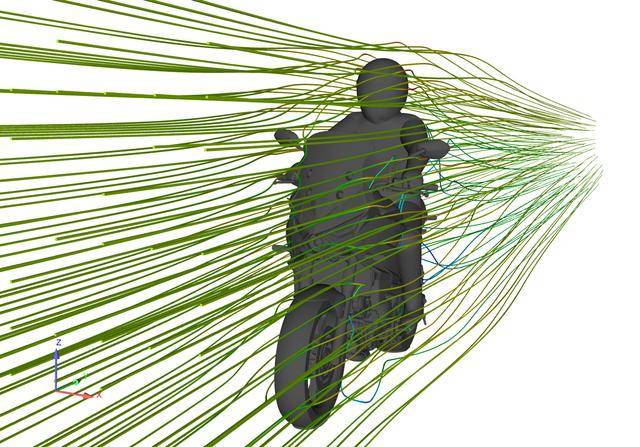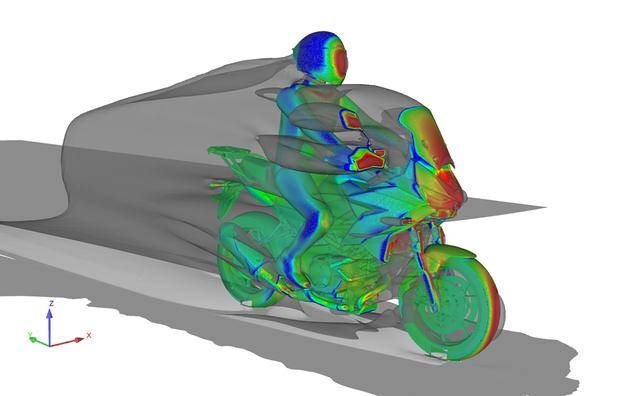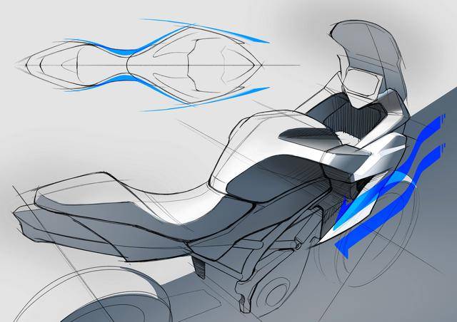 4、從車(chē)頭整流罩延伸而來(lái)、車(chē)身前部?jī)蓚?cè)的翼子板,其外部形狀、是經(jīng)過(guò)反復(fù)對(duì)比之后的精心設(shè)計(jì),既要考慮到不同身材駕駛員的膝蓋位置、平衡對(duì)氣流的影響,又要考慮到外觀上的視覺(jué)效果。眼前所看到的最終設(shè)計(jì),呈一個(gè)三維的輪廓,有著一個(gè)較大的、降低氣流對(duì)膝蓋影響的保護(hù)范圍,以及一個(gè)銳利的外觀風(fēng)格,廠方稱(chēng),這是一個(gè)在騎行舒適性、和引人注目的視覺(jué)效果之間取得了平衡的最佳選擇;