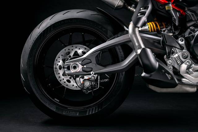 4、整個(gè)車架/底盤是全新的設(shè)計(jì),采用一副鋁制的單體式車架,以發(fā)動(dòng)機(jī)作為承載車體重量的結(jié)構(gòu)件之一;新型的雙面式后搖臂(上一代車型采用后單搖臂)被直接連接到發(fā)動(dòng)機(jī)上,以鋁合金采用低壓鑄造制成,外觀上與新的 Panigale V2、Monster 相近,但安裝連接的方式不同。而特性上、則與超級(jí)跑車 Panigale V4 相同:確保后輪的抓地力、提高出彎時(shí)的穩(wěn)定性,良好的彎中操控精度、以保持騎士所預(yù)期的、高速之下的過(guò)彎路線;此外,新車的車架/底盤響應(yīng)、對(duì)騎士過(guò)彎時(shí)的身體傾側(cè)動(dòng)作是非常線性的,騎士不需要對(duì)車把施加過(guò)大的壓力,就可以循著預(yù)想的路線完成動(dòng)作,且在完成高速轉(zhuǎn)向的過(guò)程中,車輛不需要騎士通過(guò)動(dòng)作的變化、來(lái)校正過(guò)彎路線;