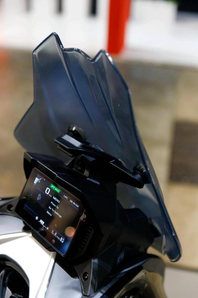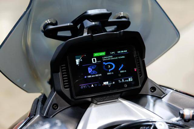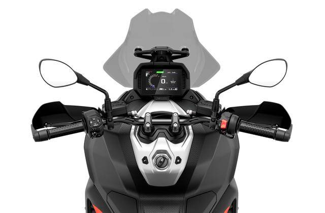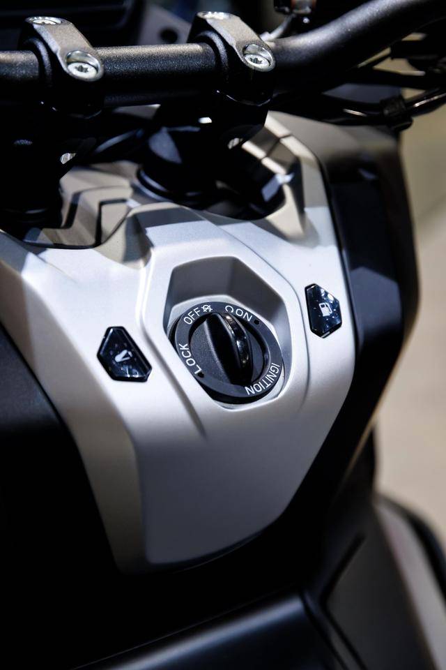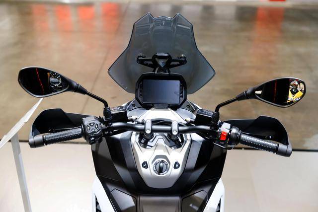 8、高達(dá) 195 mm 的離地間隙(注:作為對照,HondaADV350 的離地間隙為 155 mm),且鞍座高度被控制在 820 mm(ADV350 為 795 mm);容量為 12 公升的油箱,前 16、后 14 英寸直徑的車輪標(biāo)配了全地形的輪胎;5 英寸 TFT 全彩色數(shù)字式儀表板,標(biāo)配了無鑰匙系統(tǒng),整備重量 186 公斤。