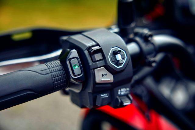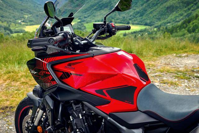 10、其他方面,采用 5 英寸TFT 全彩色的數(shù)字式儀表板;更厚的、提供更好舒適性的鞍座(駕駛員位置比 CB1000 Hornet 厚了 15 mm,后座乘客位置厚了 39.5 mm);車把和腳踏的位置、針對長途騎行的舒適性做了優(yōu)化;標配了可拆卸后行李架、智能鑰匙、可加熱的車把兩端握手等。