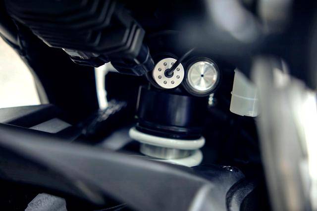 7、標配了 Showa 配套的 EERA(Electronically Equipped Ride Adjustment,電子裝備騎行調(diào)節(jié))電子控制懸掛系統(tǒng):前面是標準行程為 130 mm 的倒立式前叉,后面是 144 mm 更長標準行程(CB1000 Hornet 為 130 mm/140mm)的單筒式后減震;