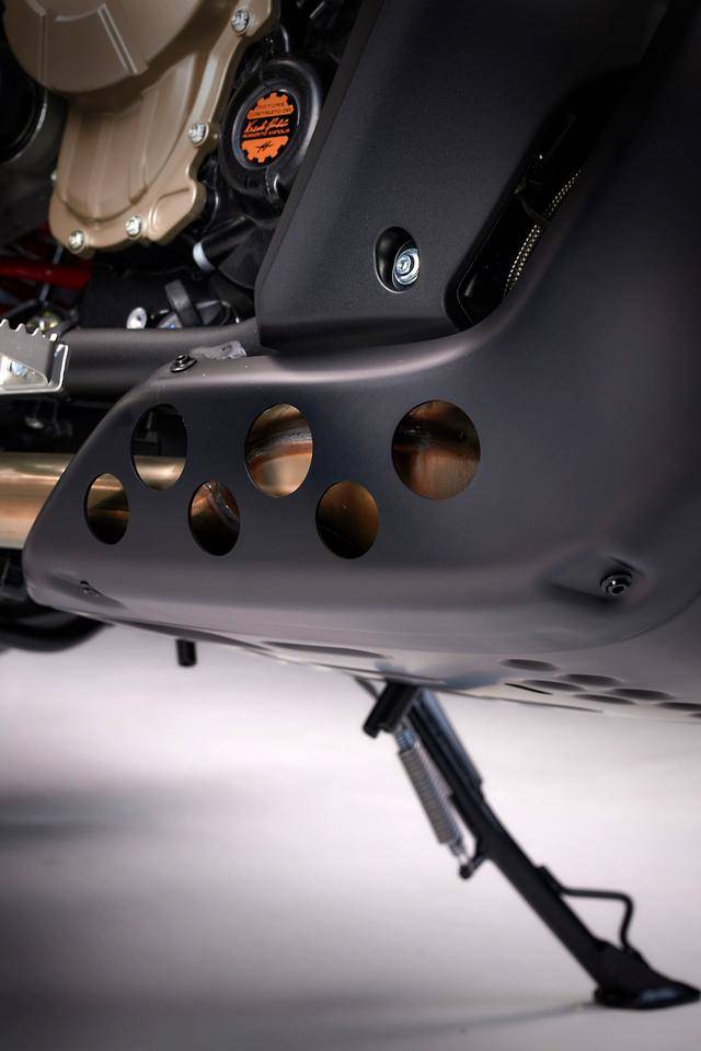 * 標(biāo)配了中央大腳架,用于提高越野環(huán)境下防護(hù)能力的、位于車身前部的防護(hù)桿,以及用于提高能見度的前霧燈。