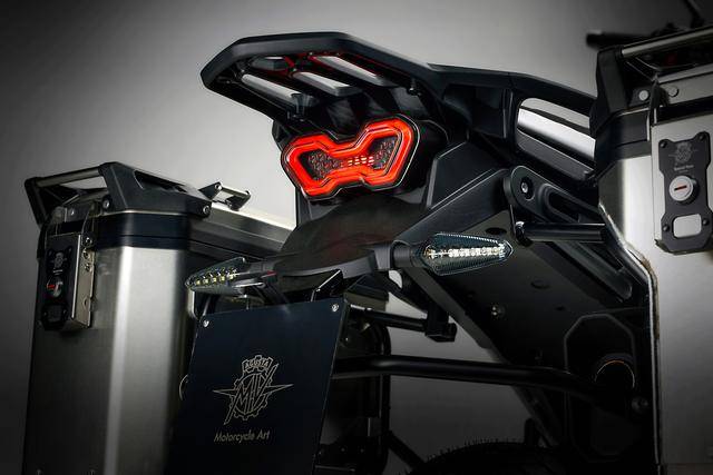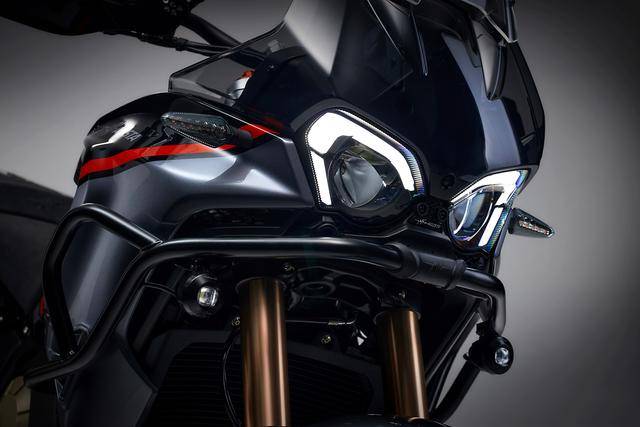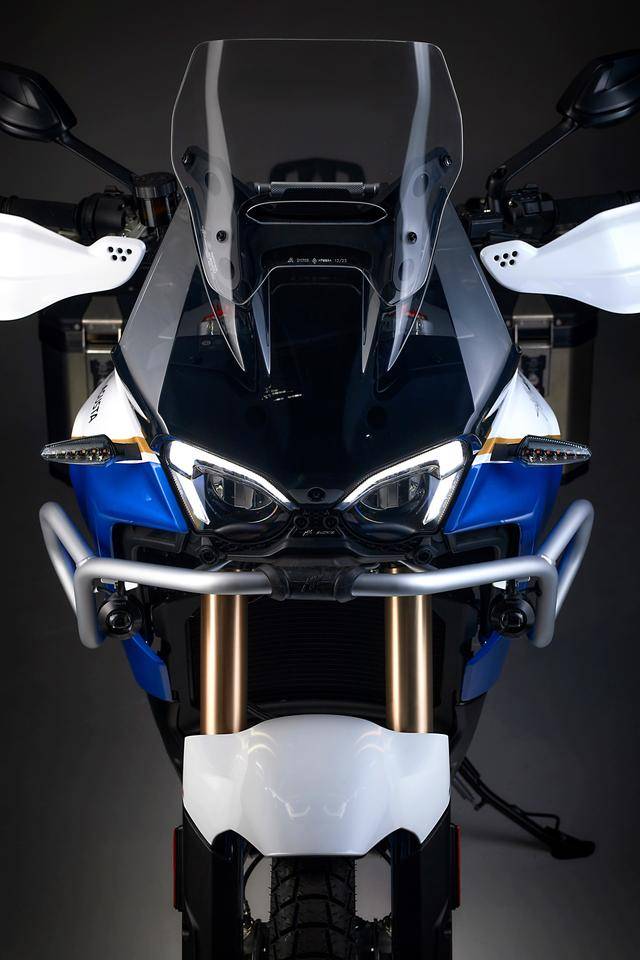 3、探險車風(fēng)格的外觀造型,車頭前部整流罩經(jīng)過空氣動力學(xué)測試,與前風(fēng)擋的配合之下,可以有效降低高速之下、迎面氣流對騎士的影響;標(biāo)配了一個 7 英寸的大型 TFT 全彩色數(shù)字式儀表板,全 LED 的燈光系統(tǒng),容量為 20 公升的油箱,鞍座具有兩個高度(850 mm 和 870 mm)可調(diào),離地間隙 230 mm,除燃油外、全車整備重量 239.7 公斤;
