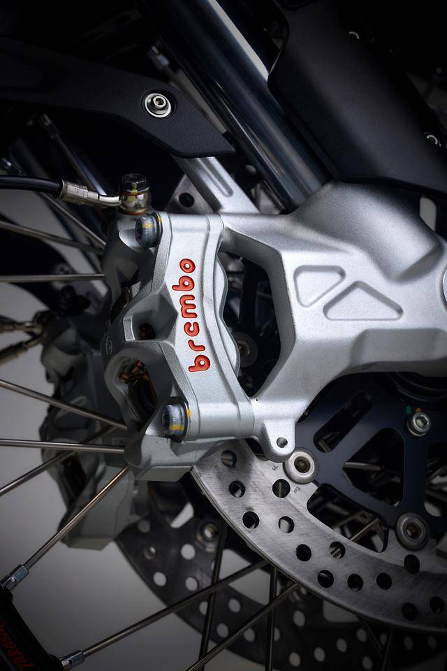4、Brembo布雷博配套的制動系統(tǒng),前面采用了直徑為 320 mm 的雙浮動式剎車碟 + Stylema 剎車卡鉗;
