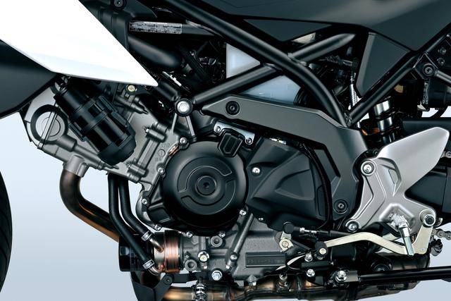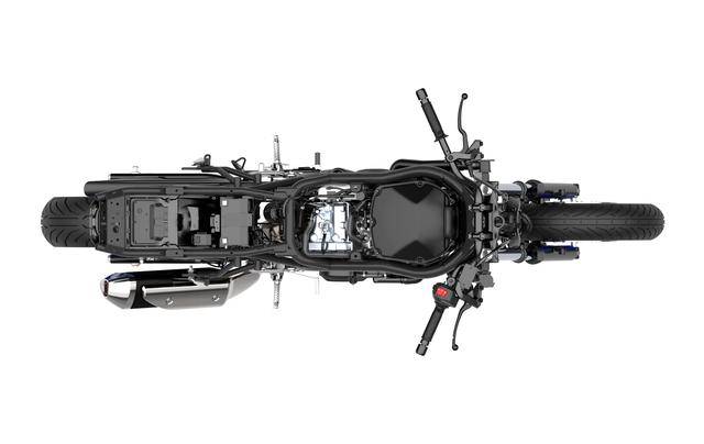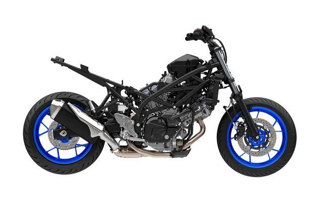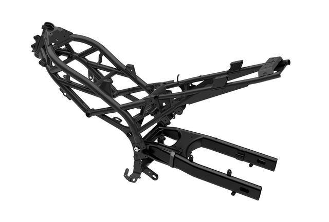 4、新車采用一副基于 SV650 修改而成的、長方形橫截面的鋼管式車架,不同方向的剛性經(jīng)過調整,與發(fā)動機連接的安裝點經(jīng)過加固,并針對新的人體工程學和多功能性進行了升級;