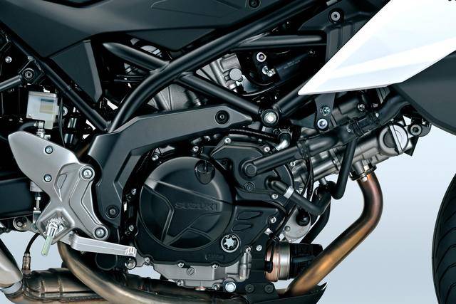 2、這副 V2 動力單元的最新規(guī)格符合歐五 + 排放標準,屬于有著超過 25 年歷史(1999 年首次推出)、較老但有著高度可靠性的成熟平臺。除了原有帶 SCEM(Suzuki Composite Electrochemical Material,Suzuki 復合電化材料)電鍍涂層的氣缸、帶涂層的活塞、L 型卡口活塞環(huán)、每氣缸雙銥合金火花塞等設計之外,外部采用了全新設計的空氣濾清器、以及內部經(jīng)過修改的排氣系統(tǒng),從而保持了原有機器的輸出特性、維持了峰值動力輸出的同時,又可符合最新的環(huán)保要求;