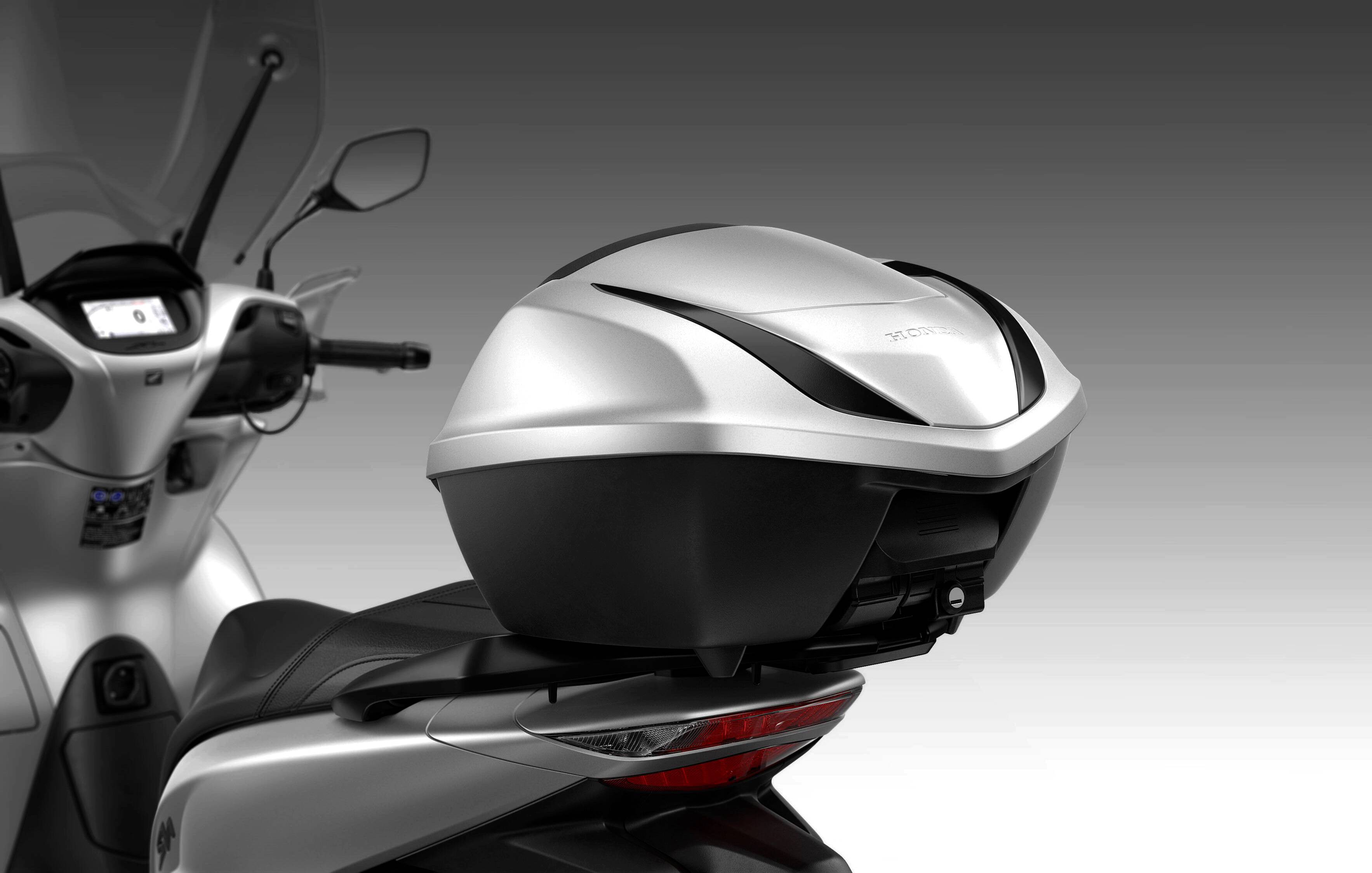 面向歐洲市場,2026 Sh125i 提供五個不同的原廠配置供選購:沒有額外附件/用品的基本型,標(biāo)配了智能化尾箱(與智能鑰匙聯(lián)通)版本,標(biāo)配了普通尾箱的版本,以及兩個標(biāo)配了前風(fēng)擋、車把兩端護(hù)罩以及不同尾箱的版本。