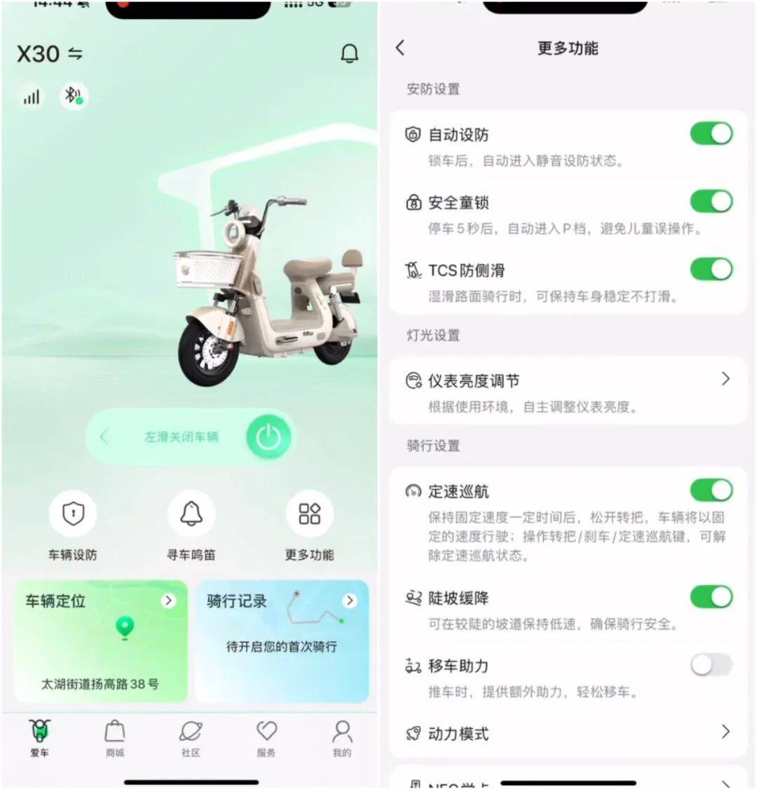 智能互聯(lián)方面,X30通過手機App實現(xiàn)了遠程解鎖、鑰匙分享、精準定位和異動報警等功能。PCDS騎行管家系統(tǒng)允許用戶自定義騎行模式,無論是追求節(jié)能的日常通勤,還是需要更強動力的爬坡場景,都能找到合適的設置。