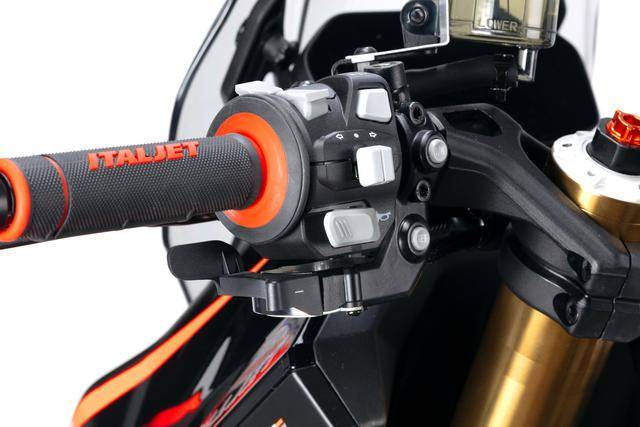 4、另一個(gè)的標(biāo)志性裝備是名為 ISAS(Italjet Stiffness Adjustment System,Italjet 剛度調(diào)節(jié)系統(tǒng))的后減震輔助調(diào)節(jié)系統(tǒng)。該系統(tǒng)位于車體后右側(cè)(后減震位于后左側(cè)),用于供騎士對(duì)后減震的軟硬程度進(jìn)行微調(diào),以適應(yīng)不同的當(dāng)前騎行條件和騎乘風(fēng)格;