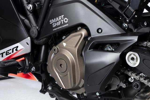 2、標(biāo)志性的裝備之一,是六檔的變速齒輪箱配備了名為 SmartShift(Intelligent Automatic Transmission,智能化自動(dòng)變速齒輪箱)的自動(dòng)換檔系統(tǒng),該系統(tǒng)去掉了慣常左手的離合器和左腳換檔桿,內(nèi)置了以 ECU 控制的電子離合器和齒輪動(dòng)作控制結(jié)構(gòu),實(shí)現(xiàn)智能化的自動(dòng)換檔、或者是無離合操作之下的手動(dòng)換檔(通過位于左邊車把上的 +/- 按鍵進(jìn)行手動(dòng)換檔)。廠方稱,該系統(tǒng)將手動(dòng)變速箱的精度、與全自動(dòng)變速箱的便利性融為了一體;