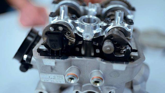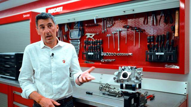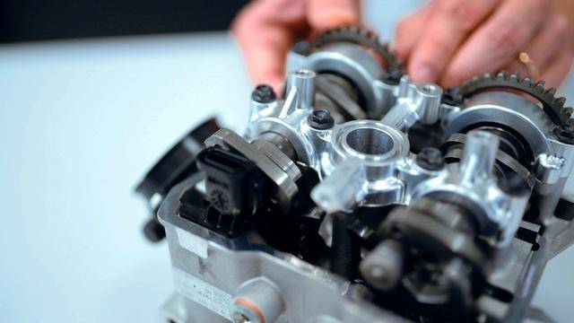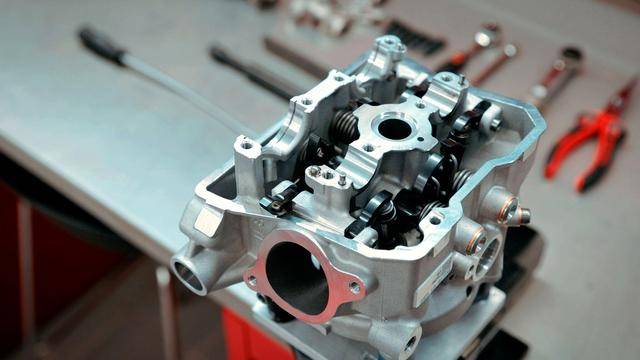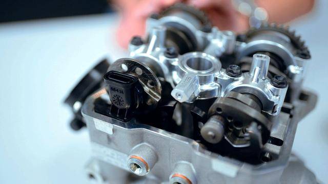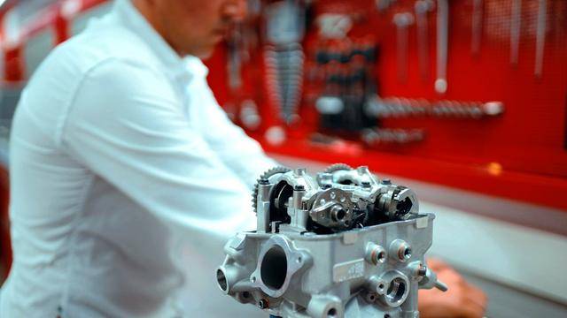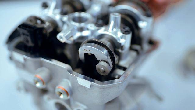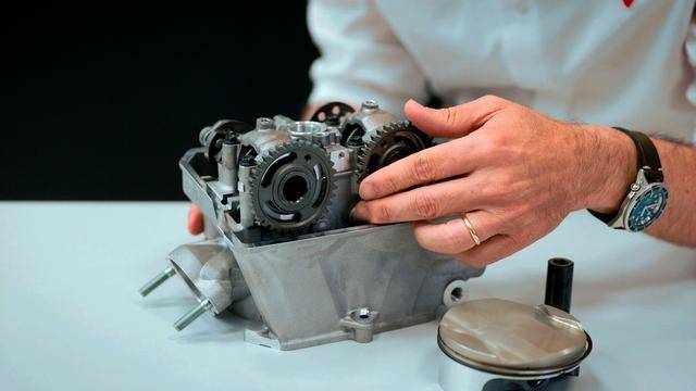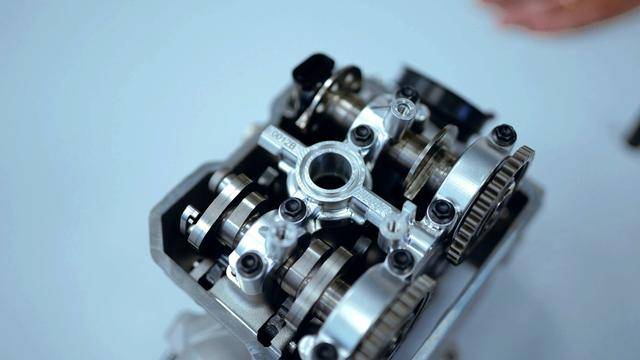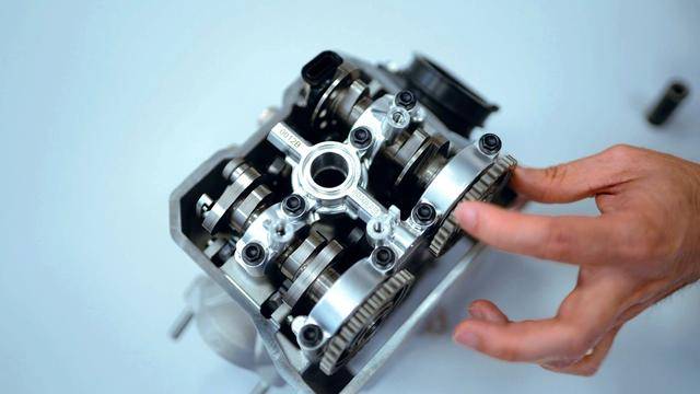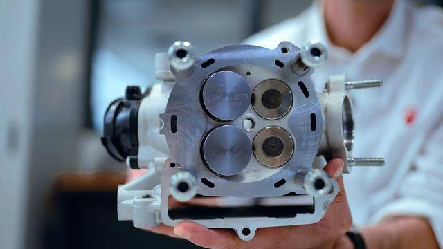 與杜卡迪在 MotoGP 和 WorldSBK 里面所使用的賽車一樣,采用 Desmodromic 氣閥正時(shí)控制(采用軸來控制氣閥的開合,而常見的氣閥開合控制組件是彈簧)的配氣結(jié)構(gòu),是 Desmo450 MX 的標(biāo)志之一。該設(shè)計(jì)的主要好處,是讓配氣系統(tǒng)、比傳統(tǒng)的配氣結(jié)構(gòu)(彈簧控制氣閥)容許更高的轉(zhuǎn)速,從而為騎行提供更大的擴(kuò)展性。