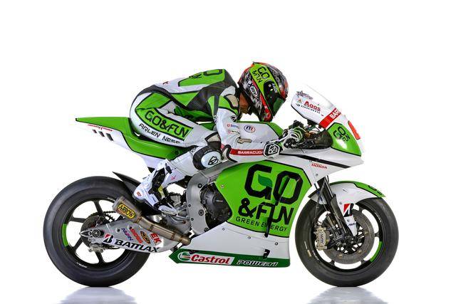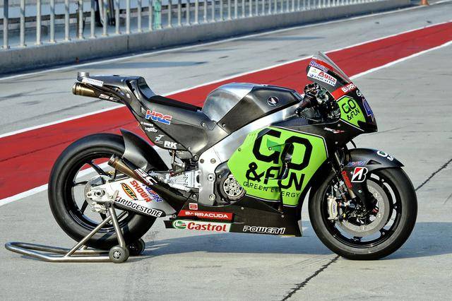 下面的圖片,2013 賽季、Gresini 吉斯尼車隊,與 RC213V 一起登場的 FTR Honda 賽車。
