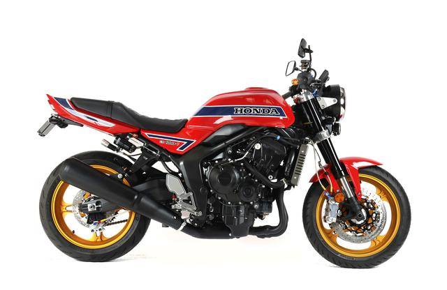 十月初的時候,Honda 向全球多地發(fā)布了新型復古街車 CB1000F。新車基于運動街車 CB1000 Hornet “ 黃蜂 ” 修改而成,搭載一副水冷四沖程直列四氣缸、DOHC 每氣缸四氣閥發(fā)動機,排氣量 999 cc,最大動力輸出被調(diào)低至 91 kw/9000 rpm(約 124 匹。CB1000 Hornet “ 黃蜂 ” 歐洲版基本型則為 111.6 kw/11000 rpm,國內(nèi)銷售的 CB1000 Hornet SP 為 67 kw)。車體方面,CB1000F 系列采用一個復古風格的外觀造型,鋼管制雙樑式車架,Showa 配套的前后懸掛系統(tǒng),比運動街車版更厚、更具舒適性的鞍座,LED 的前大燈,5 英寸 TFT 全彩色的數(shù)字式儀表板等。