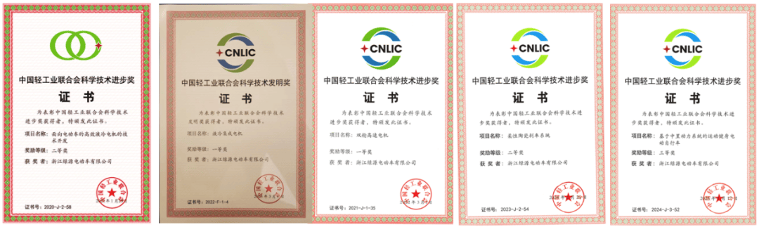 中國輕工業(yè)聯(lián)合會連續(xù)五年授予綠源科學(xué)技術(shù)獎項,“液冷集成電機”更是榮獲“科學(xué)技術(shù)發(fā)明獎一等獎”;2022年全球增長咨詢公司弗若斯特沙利文授予綠源“全球液冷電機開創(chuàng)者”、行業(yè)“自主發(fā)明專利數(shù)量中國第一”、行業(yè)“產(chǎn)品消費者品質(zhì)滿意度市場第一”等多重認證。