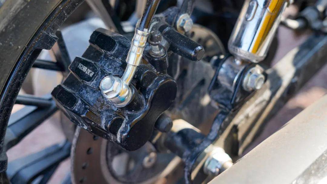 剎車方面,鯨150采用前單向雙活塞,后單向雙活塞卡鉗,邊車同樣采用碟剎單活塞的配置,配合整車遠(yuǎn)星龜背胎的搭配,制動(dòng)力相當(dāng)強(qiáng),但沒(méi)有ABS,也不帶前后聯(lián)動(dòng)剎車(邊車與后輪是默認(rèn)聯(lián)動(dòng)剎車),所以急剎依然要小心,不能太猛。