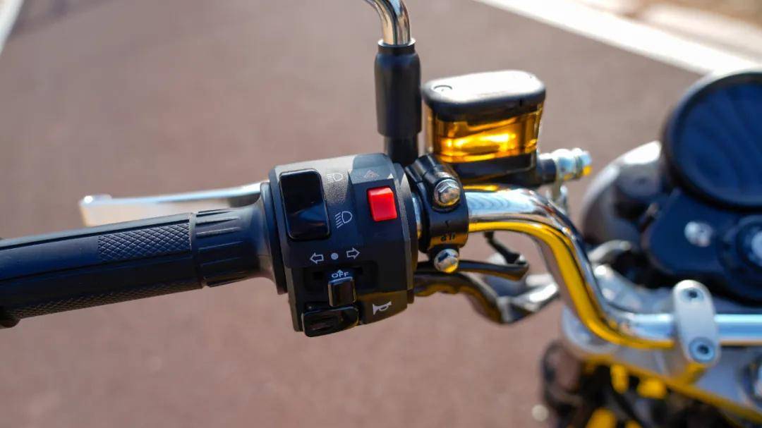 按鍵部位采用常規(guī)通用件,與Super 迷你相同,按壓以及阻尼質(zhì)感屬于常規(guī)水準(zhǔn),值得注意的是左側(cè)手把設(shè)置了雙閃警示燈,單油門(mén)拉線,前剎車手柄上集成了手動(dòng)駐車功能,在進(jìn)行一些坡道等斜度路面免去了檔位停車的麻煩,還是非常貼心的。