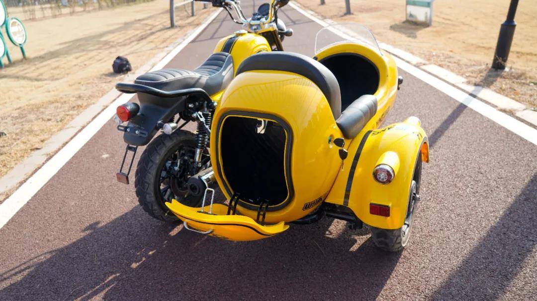 避震器方面采用前正立式前叉,后雙槍彈簧式避震器,邊車輪胎部位同樣采用了避震器連接,減震舒適度有有所保證,行駛過(guò)程中的穩(wěn)定性舒適性表現(xiàn)咱們動(dòng)態(tài)接著聊??紤]到邊三輪車型的自重,鯨150原廠配備了12.5L的油箱,續(xù)航能力有所保證。