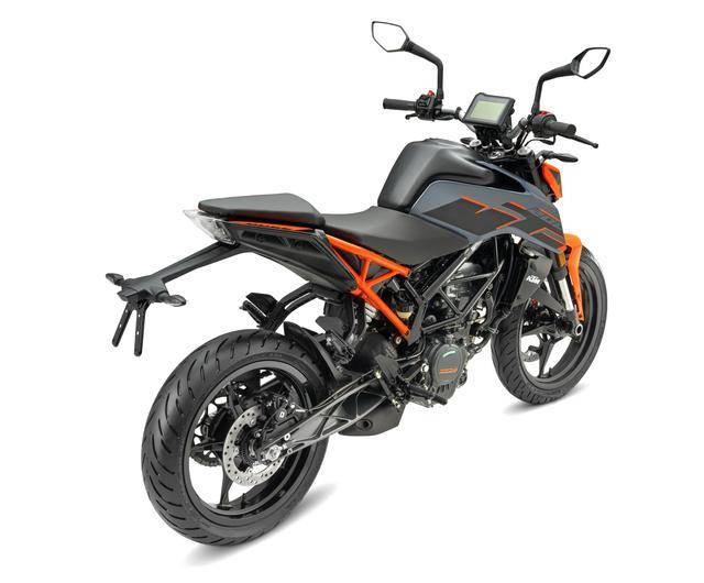 車體方面也沒有太大的變化,沿用了現有的鋼管車架、平直造型的鋁合金后搖臂(新一代車型采用左右不對稱造型的后搖臂),換裝了 WP 配套的新型號前后懸掛系統(tǒng),前面采用了叉芯口徑為 37 mm、標準行程為 138 mm(2023 款采用叉芯口徑為 43 mm、標準行程為 117 mm)的倒立式前叉,標準行程為 161 mm(2023 款為 150 mm)的單筒式后減震;前后碟式的制動系統(tǒng)、標配了雙通道的 ABS(部分國家/地區(qū),ABS 是選裝設備),數字式的儀表板等。與 2023 款相比,2026 款 200 Duke 在車身的主要變化是換上了新的車體圖案/貼花。