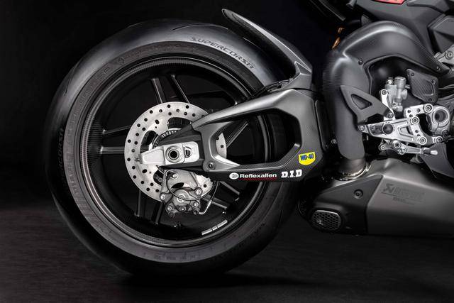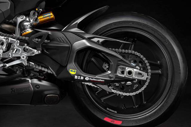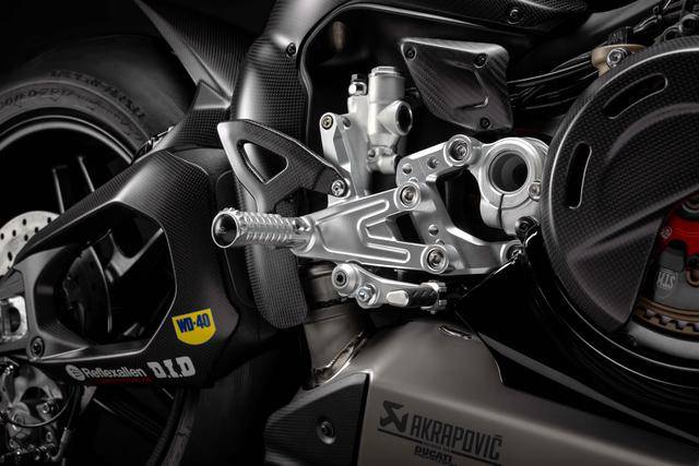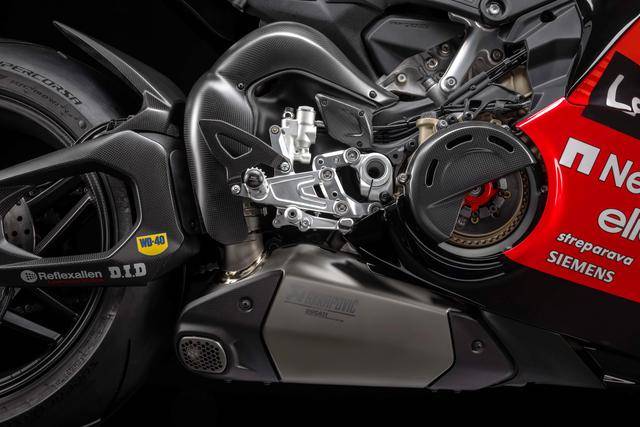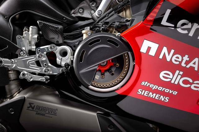 1、搭載一副來自 Panigale V4 S 的 V 型 90 度四氣缸、DOHC每氣缸四氣閥 Desmosedici Stradale 發(fā)動(dòng)機(jī),排氣量 1103 cc,附加了經(jīng)過常規(guī)公共道路使用認(rèn)證的 Akrapovic阿克拉波維奇消聲器,ECU 經(jīng)過對(duì)應(yīng)的設(shè)置,峰值動(dòng)力輸出 218.5 匹/13500 rpm(歐洲版。S 版的最大動(dòng)力輸出為 216 匹);