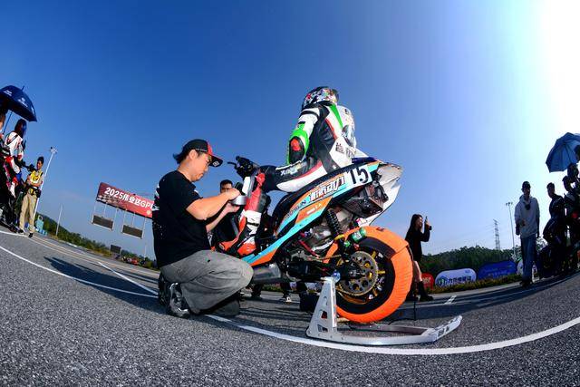 有多達(dá) 21 位車手,報(bào)名參加這次 2025 偉業(yè)達(dá) GP 粵港澳大灣區(qū)摩托車大賽恩平站、中策橡膠艾瑞森輪胎電車 B 組的角逐,這一組別的參賽者使用艾瑞森的競(jìng)技級(jí)輪胎。較量從排位賽(計(jì)時(shí)練習(xí))就開始了:9 號(hào)車的馬乾福跑出了破紀(jì)錄的 58.096 秒圈速(此前的舊紀(jì)錄為 58.974 秒)、拿到了第一節(jié)決賽的排頭位發(fā)車;另外兩位車手,6 號(hào)車的謝好威、98 號(hào)車的王小張也跑出了破舊紀(jì)錄的 58.19 秒、58.476 秒圈速,分別排在發(fā)車位置的第二、第三。