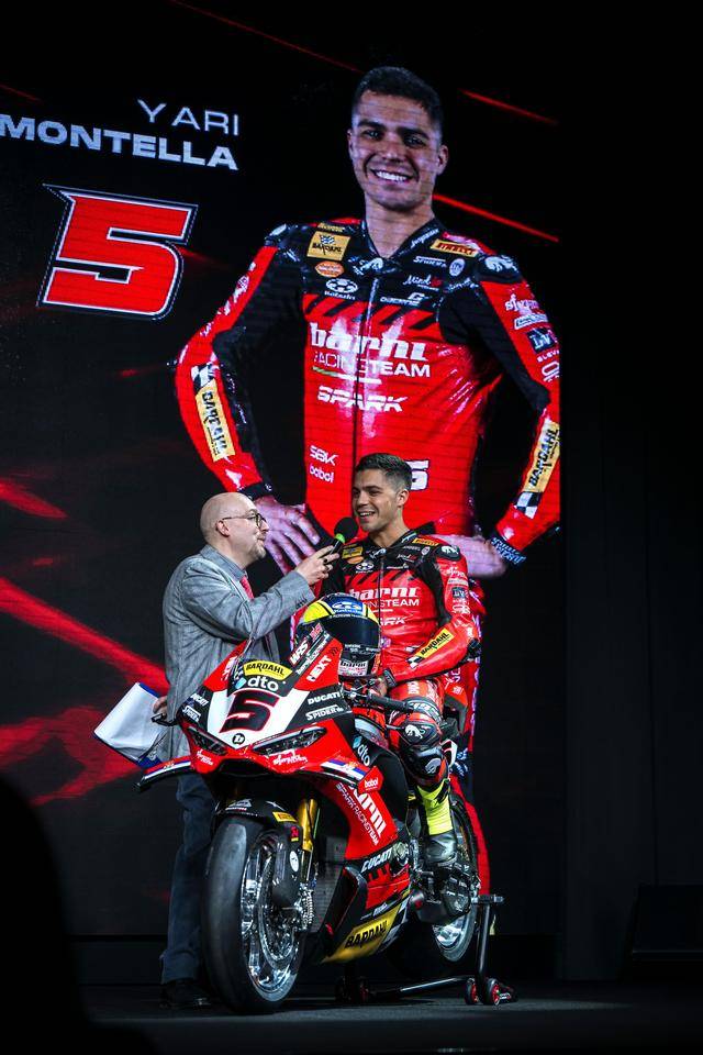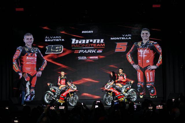 這次的發(fā)布會(huì)有兩個(gè)焦點(diǎn):西班牙車手捌弟(Alvaro Bautista,巴蒂斯塔)的加盟,他代替了去年意大利車手佩魯奇(Danilo Petrucci)的位置;杜卡迪新型的、賽道規(guī)格的 Panigale V4 R 首次亮相,該車被稱之為 Panigale V4 RS26。新的 2026 賽季是捌弟在 WorldSBK 的第八個(gè)賽季,這位兩屆 WorldSBK 世界冠軍(車手年度積分總冠軍。2022、2023 年)、今年將首次從工廠車隊(duì)轉(zhuǎn)到了獨(dú)立車隊(duì)/衛(wèi)星車隊(duì)。他在新賽季的隊(duì)友,是去年已經(jīng)在車隊(duì)里的意大利車手蒙特拉(Yari Montella)。