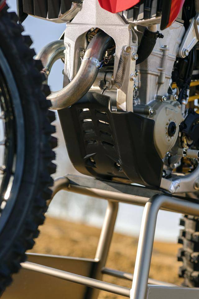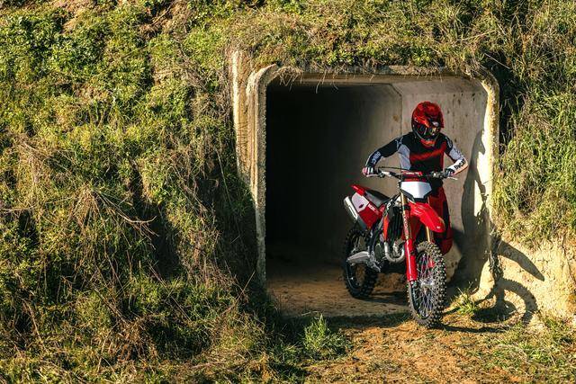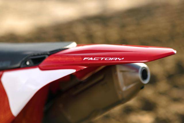 此外,工廠版還換裝了帶 O 型橡膠圈的 RK MXU Gold 金色傳動鏈條,采用了一個與工廠車隊相同風格的車身圖案/貼花,全車不含燃料的整備重量為 104 公斤(標準款為 104.8 公斤)。