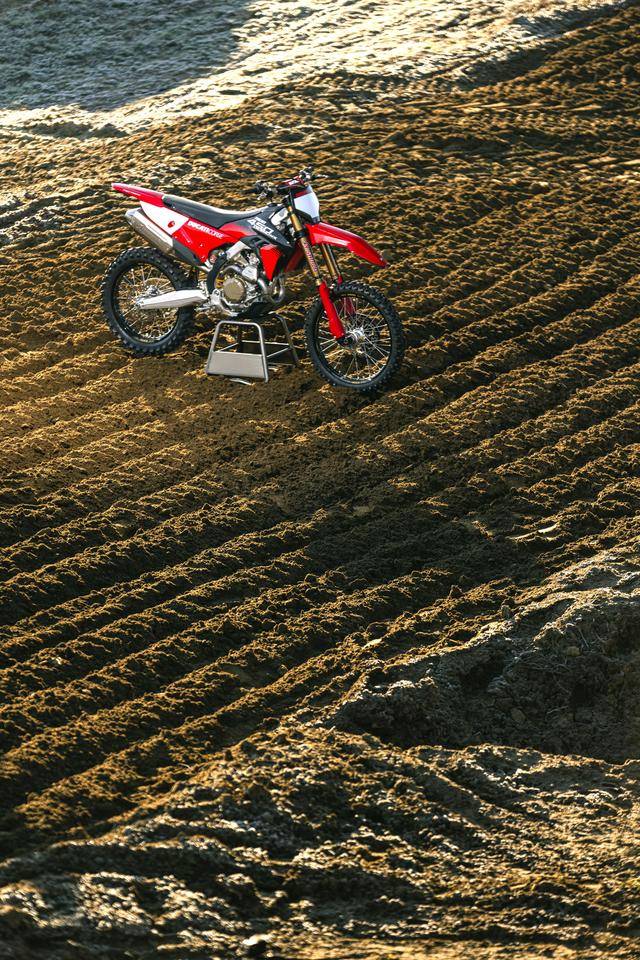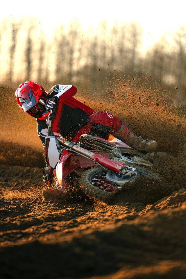 新的工廠版搭載一副與標準版相同的水冷四沖程單氣缸、DOHC四氣閥、Desmodromic 氣閥正時控制的發(fā)動機,排氣量 449.6 cc,峰值動力輸出 46.7 kw(約 63.5 匹)/9400 rpm,最大扭矩輸出 53.5 N.m/7500 rpm。車體方面,沿用了與標準款相同的鋁合金制雙翼樑車架、鋁合金制的后搖臂,Brembo布雷博配套的剎車卡鉗、Galfer 配套的剎車碟;容量為 7.2 公升的油箱;電子輔助控制系統(tǒng)方面,標配了帶有前叉下壓功能的 Holeshot 起步彈射控制系統(tǒng),兩種可選的騎行模式、兩個可選的動力模式,四種不同級別介入程度可調(diào)的 DTC 牽引力控制系統(tǒng),啟動控制,發(fā)動機制動控制,快速換檔系統(tǒng)。