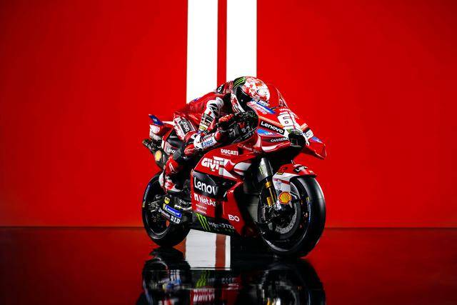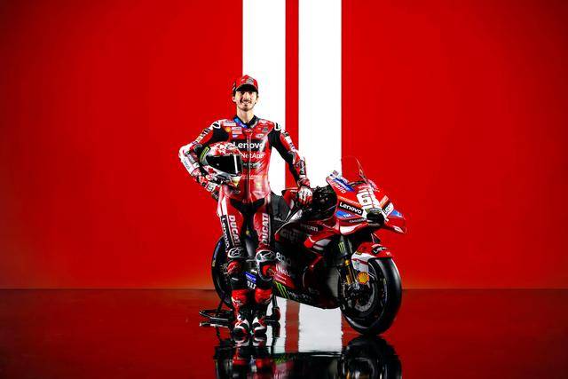 2026 年是杜卡迪創(chuàng)立一百周年(1926 - 2026),車隊在新賽季換上了一個啞光百年紅(matt Rosso Centenario)為主色調(diào)、輔以白色線條的圖案。
