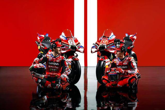 在新賽季,杜卡迪 MotoGP 工廠車隊沿用了去年的車手組合:駕駛 63 號車的意大利車手巴納亞(Francesco Bagnaia),以及應(yīng)屆世界冠軍(車手年度積分總冠軍)、駕駛 93 號車的西班牙車手馬昆斯(Marc Marquez)。