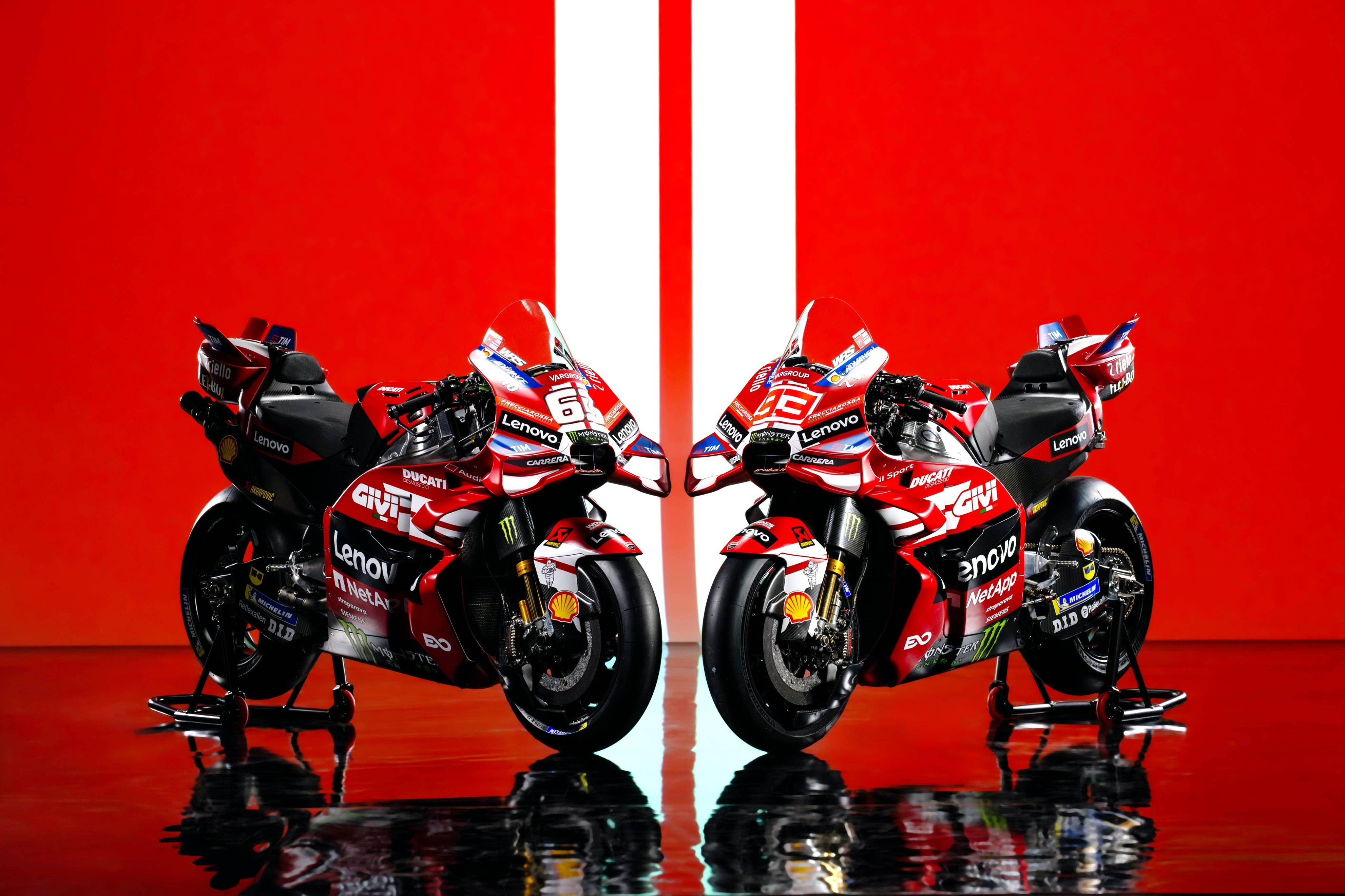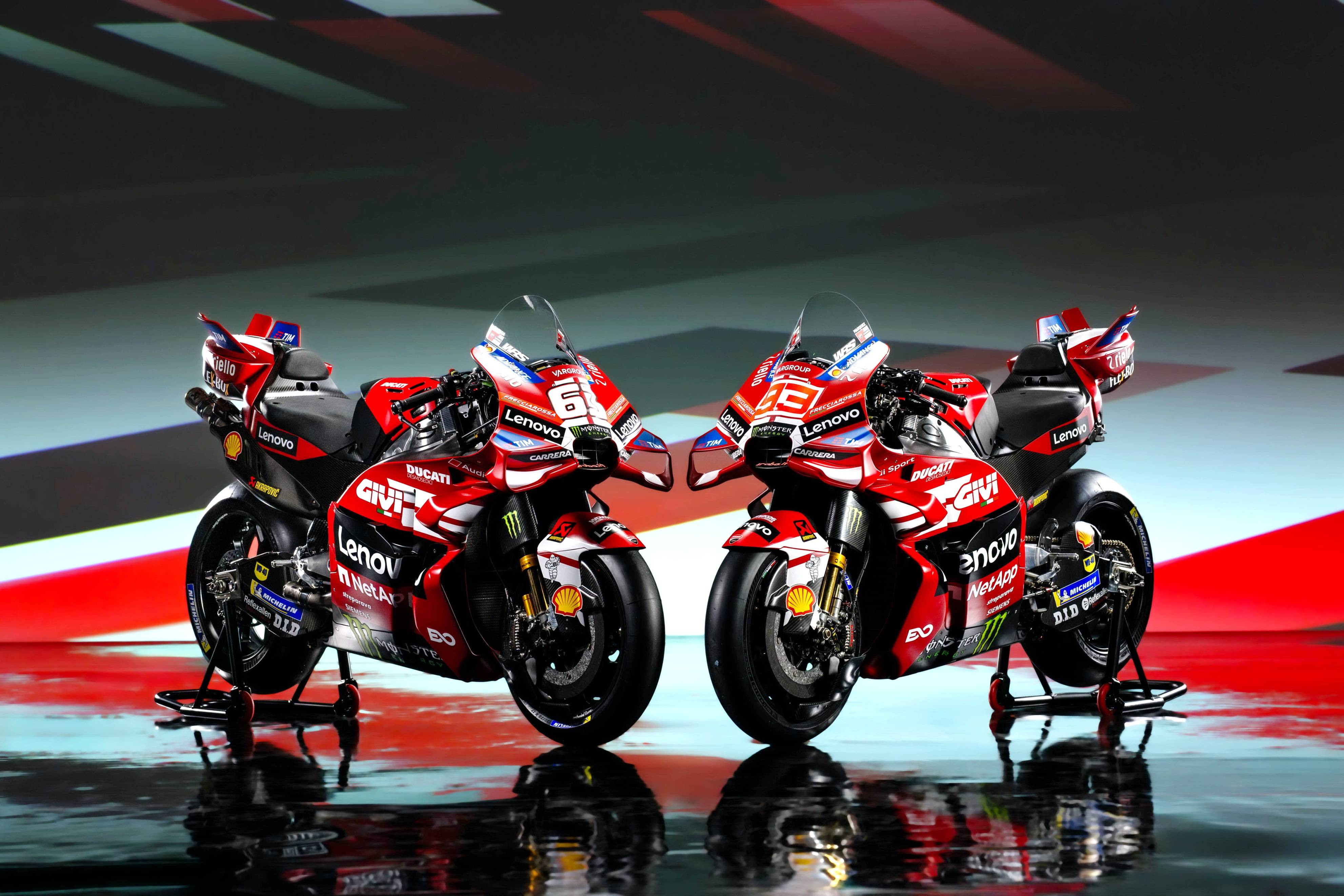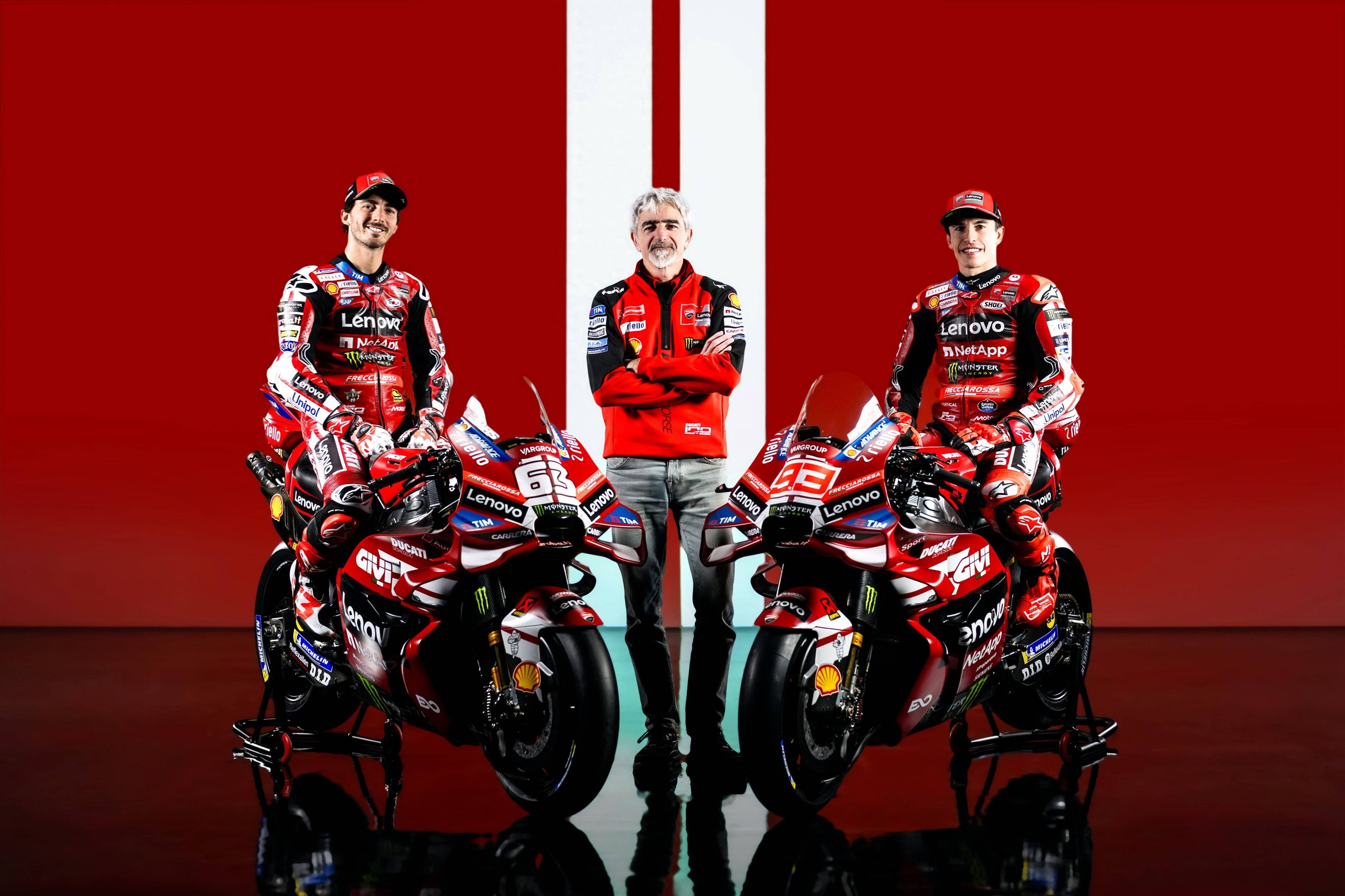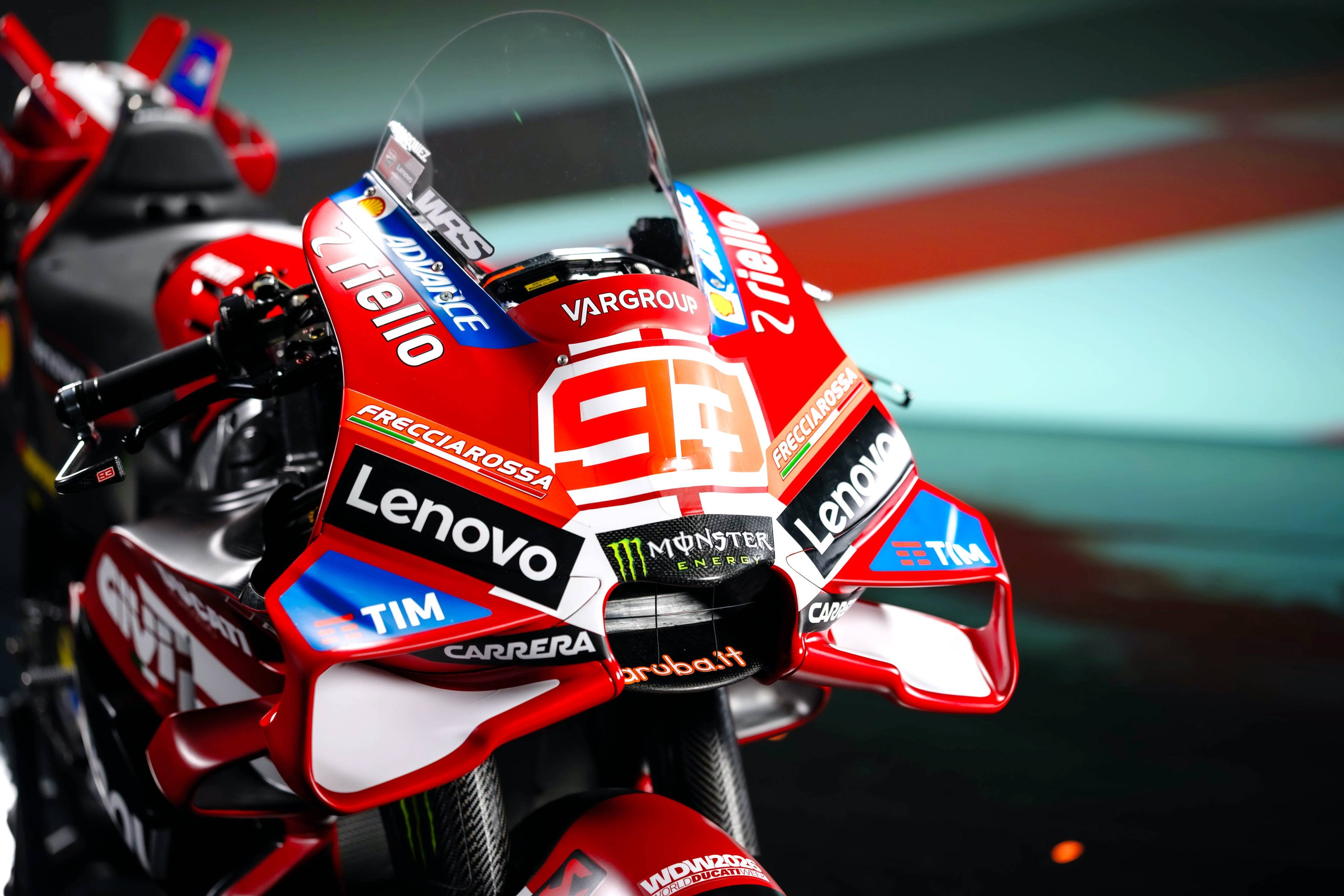 杜卡迪 MotoGP 工廠車隊在新賽季沿用了去年的車手組合:駕駛 63 號車的意大利車手巴納亞(Francesco Bagnaia),以及駕駛 93 號車的西班牙車手馬昆斯(Marc Marquez)。2026 年是杜卡迪創(chuàng)立一百周年(1926 - 2026),車隊在新賽季換上了一個啞光百年紅(matt Rosso Centenario)為主色調(diào)、輔以白色線條的圖案。