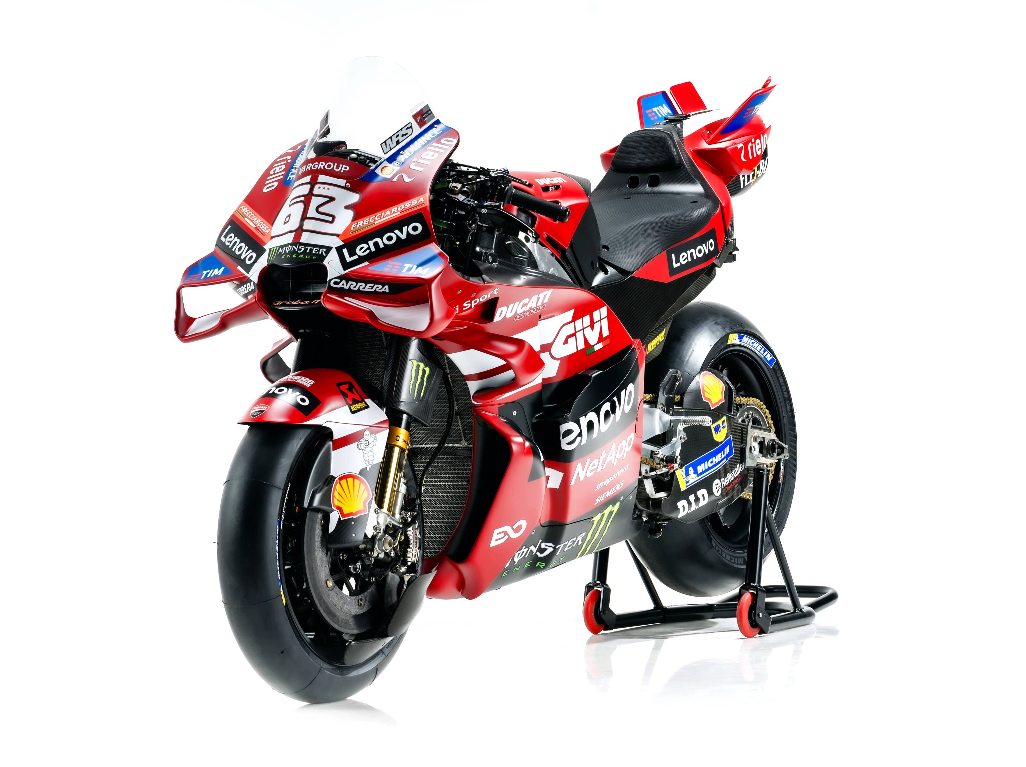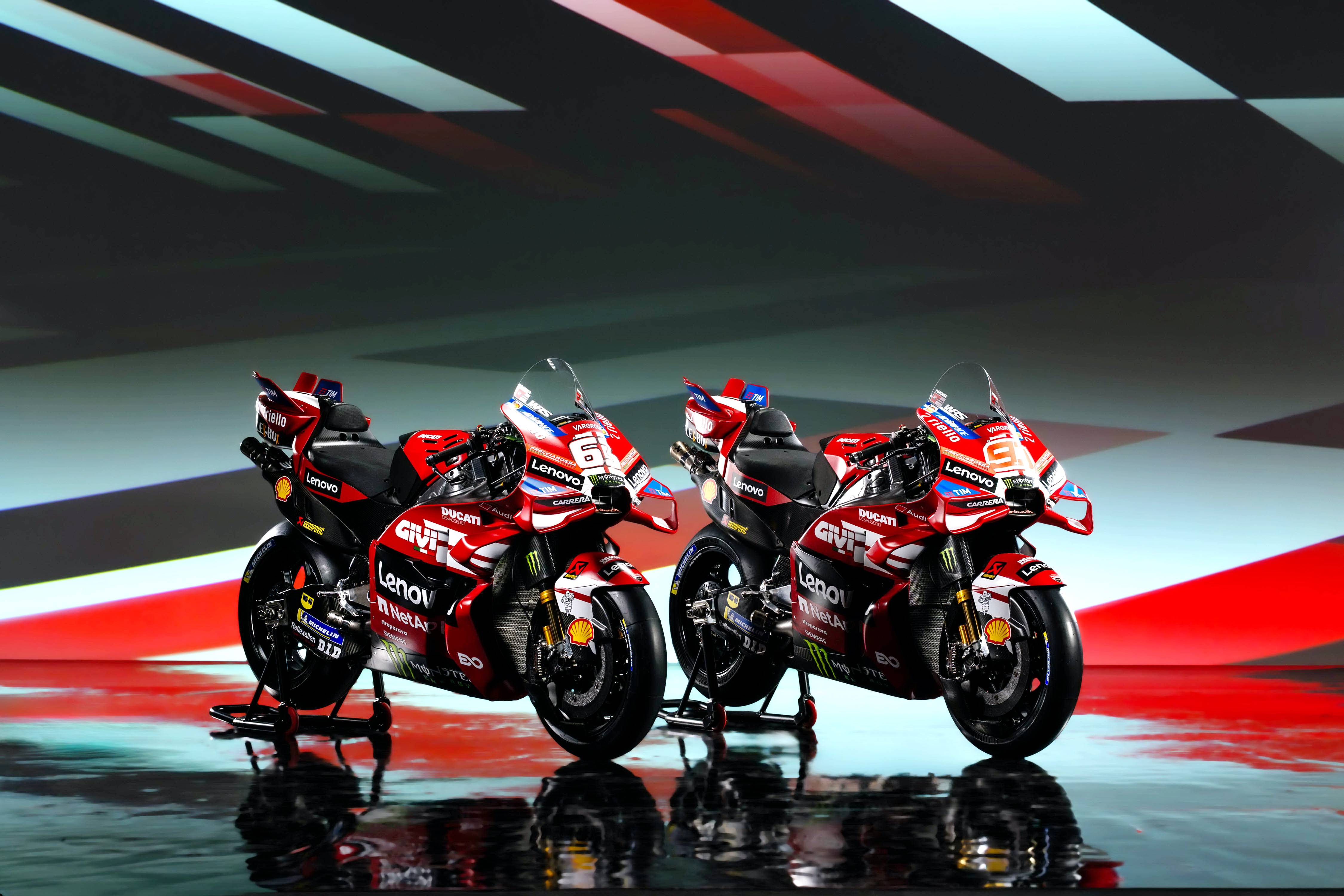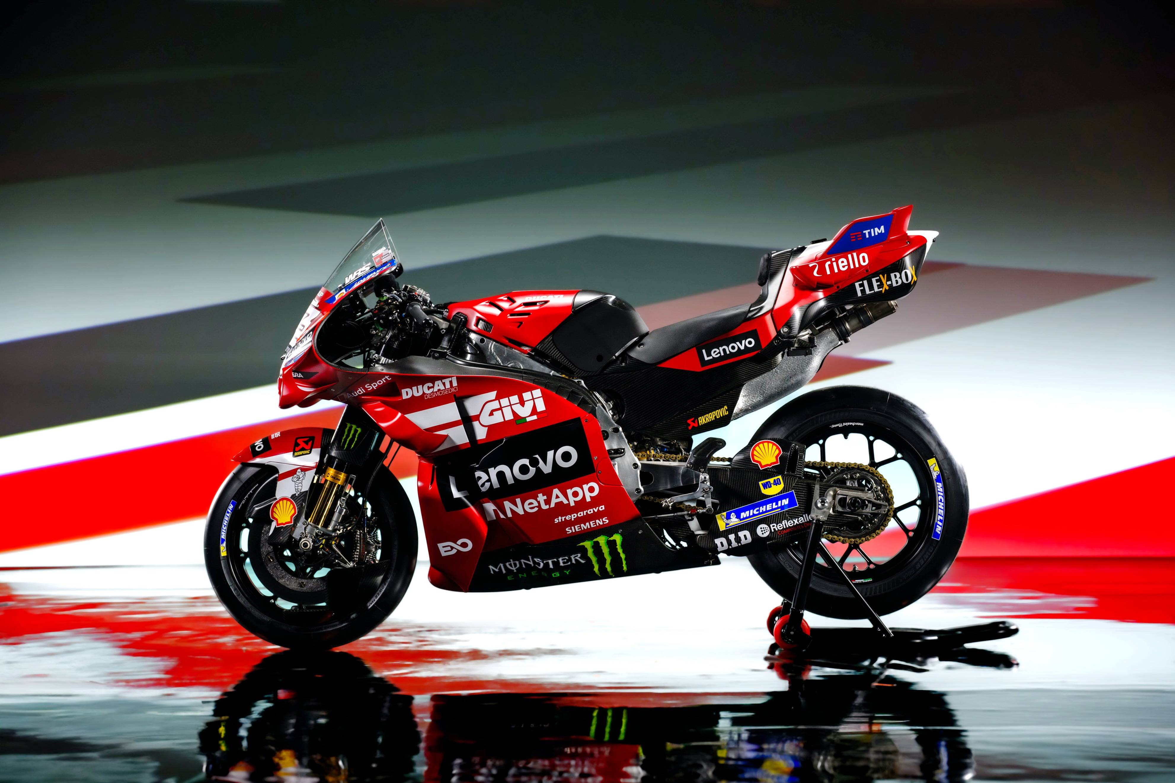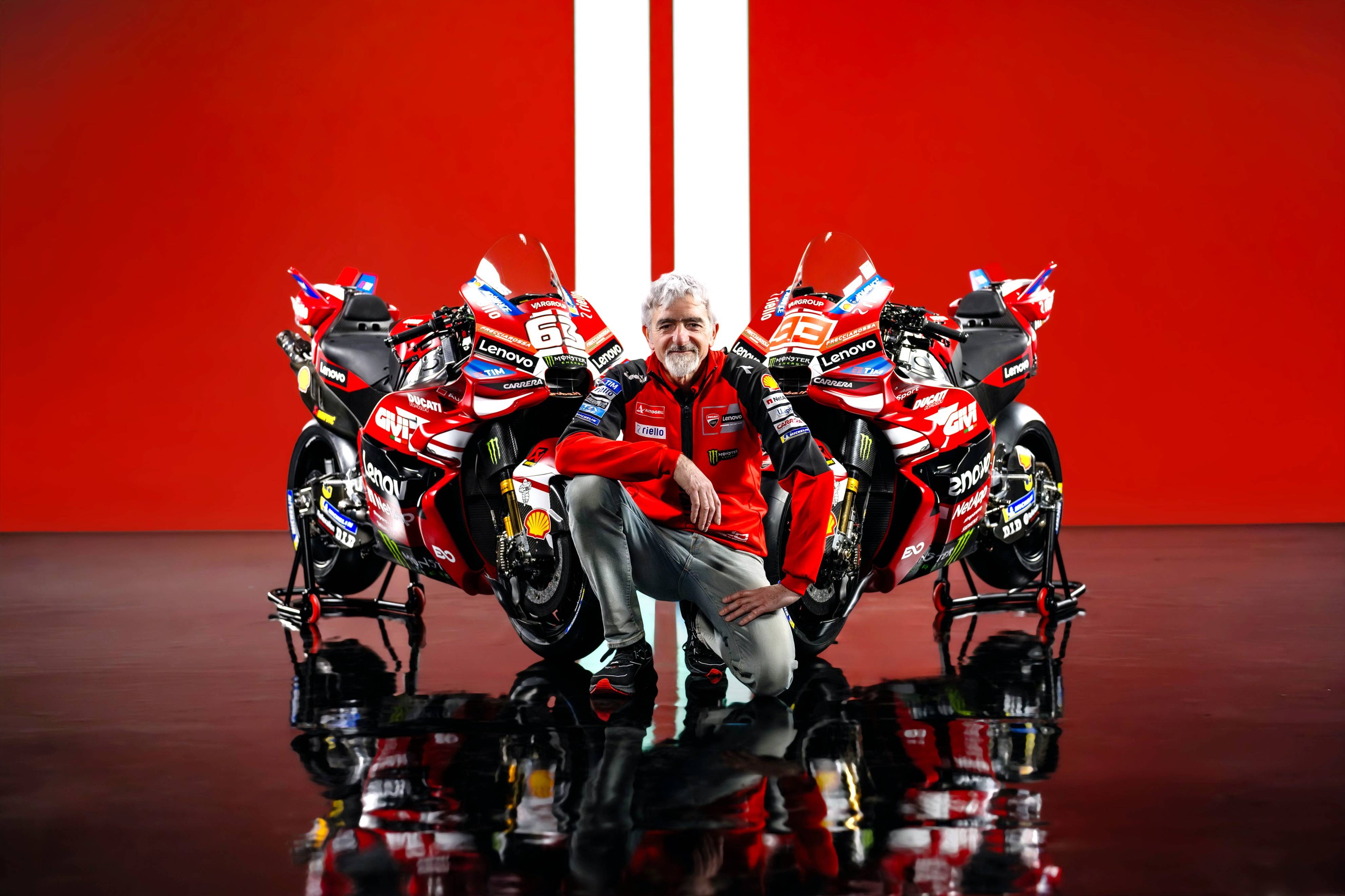 杜卡迪 MotoGP 工廠車隊在新賽季沿用了去年的車手組合:駕駛 63 號車的意大利車手巴納亞(Francesco Bagnaia),以及駕駛 93 號車的西班牙車手馬昆斯(Marc Marquez)。2026 年是杜卡迪創(chuàng)立一百周年(1926 - 2026),車隊在新賽季換上了一個啞光百年紅(matt Rosso Centenario)為主色調(diào)、輔以白色線條的圖案。