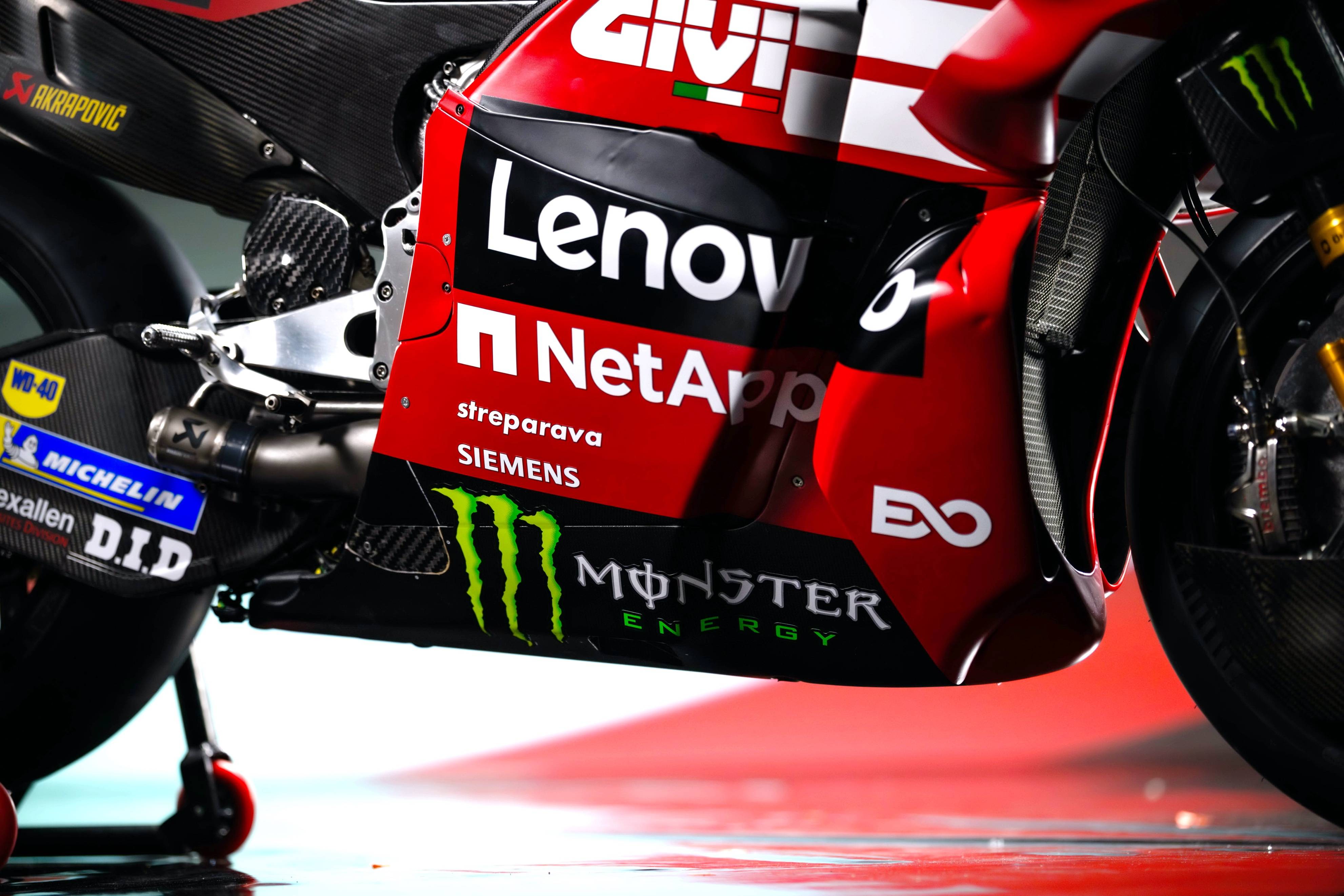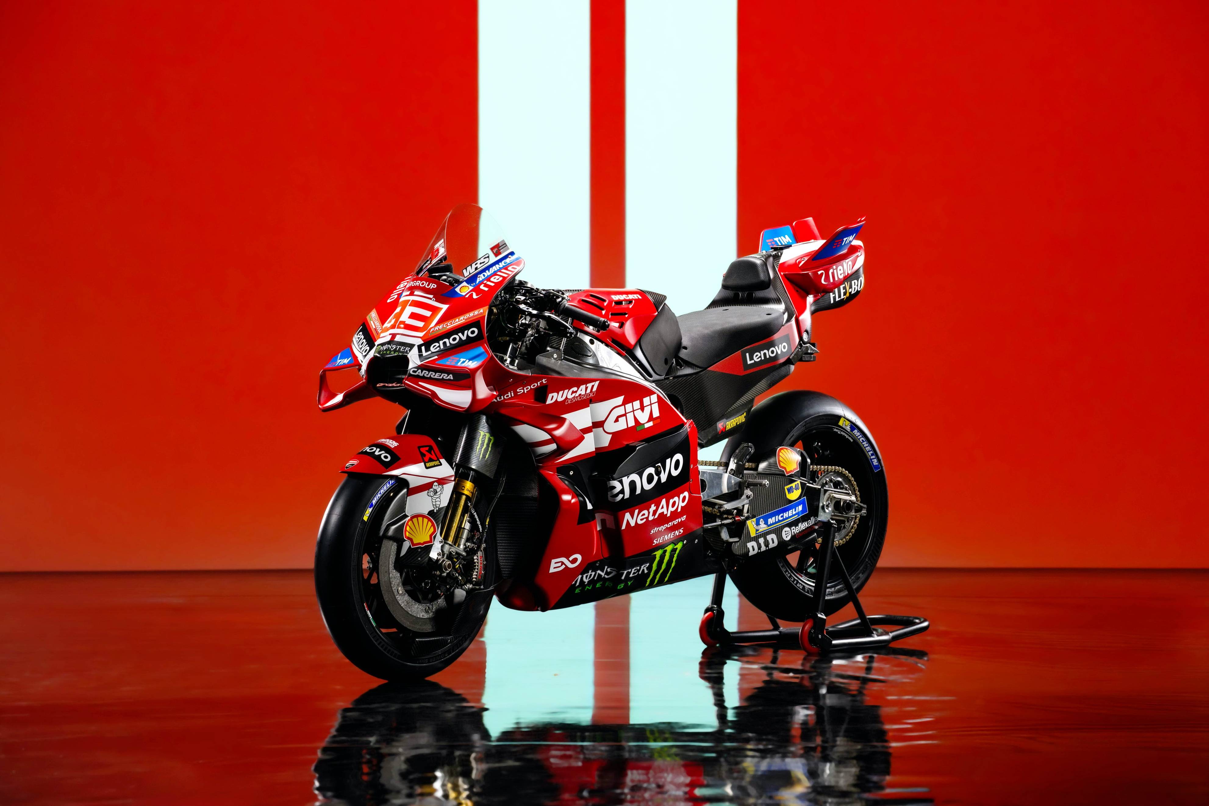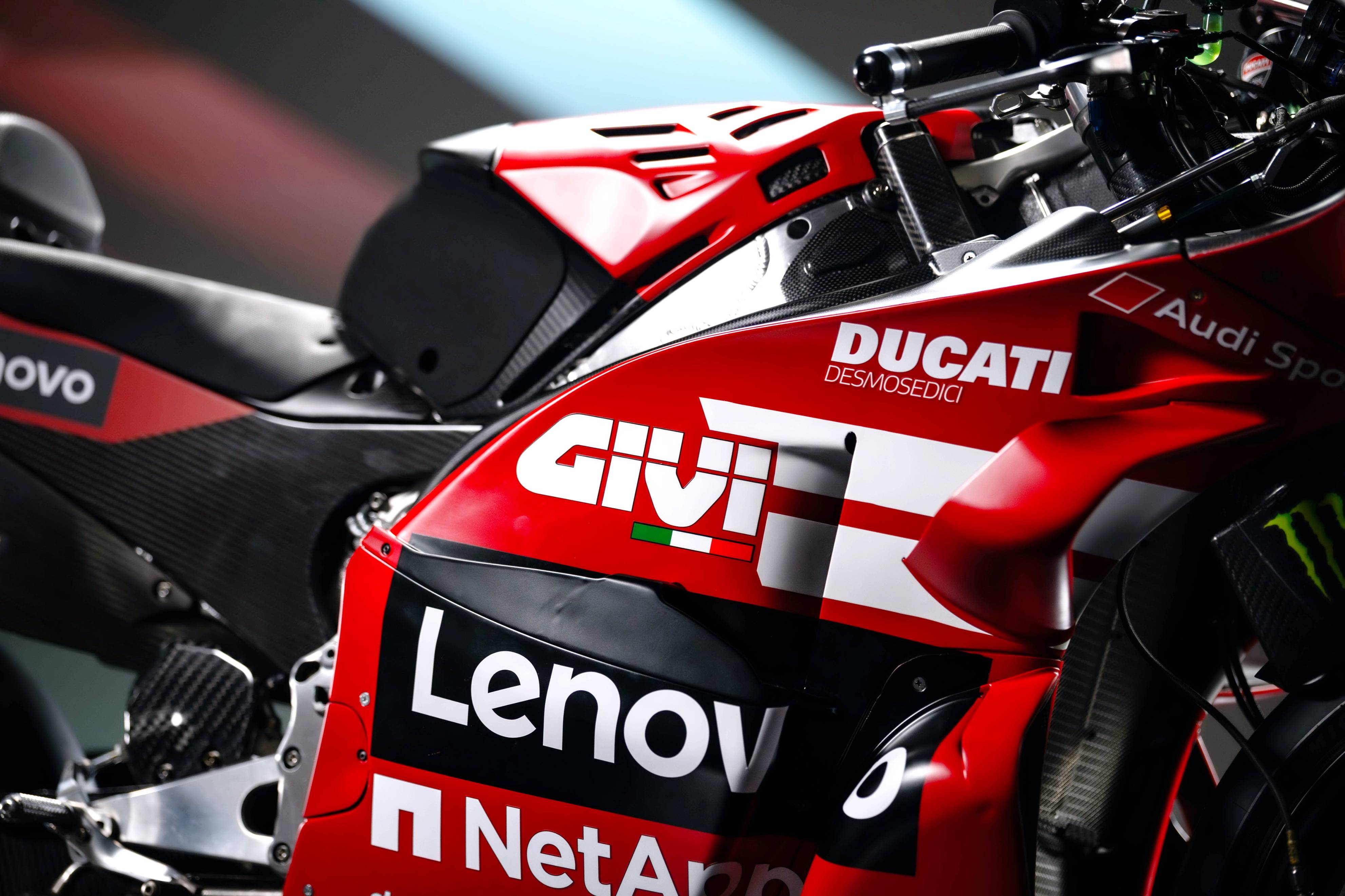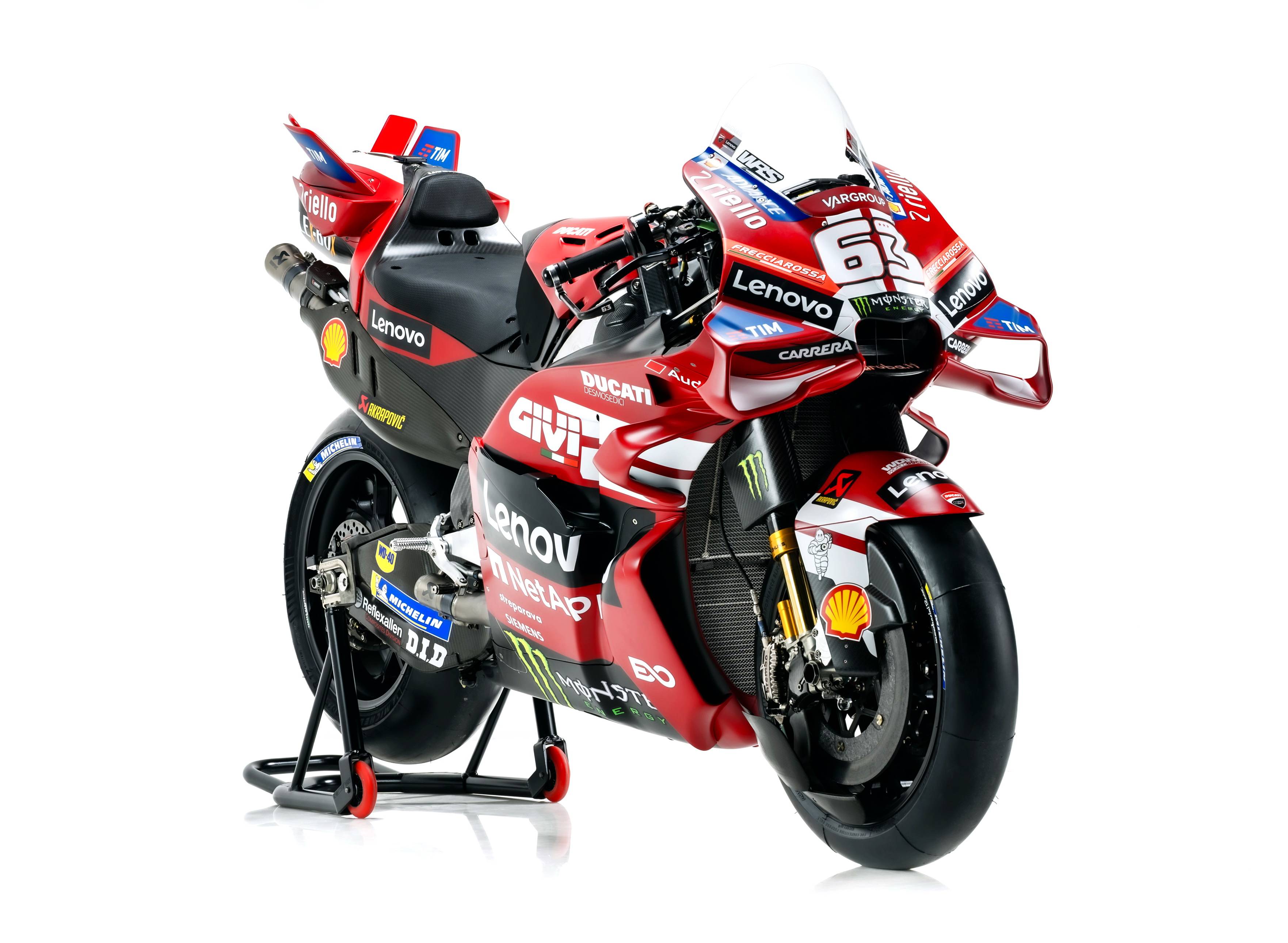 杜卡迪 MotoGP 工廠車隊在新賽季沿用了去年的車手組合:駕駛 63 號車的意大利車手巴納亞(Francesco Bagnaia),以及駕駛 93 號車的西班牙車手馬昆斯(Marc Marquez)。2026 年是杜卡迪創(chuàng)立一百周年(1926 - 2026),車隊在新賽季換上了一個啞光百年紅(matt Rosso Centenario)為主色調(diào)、輔以白色線條的圖案。